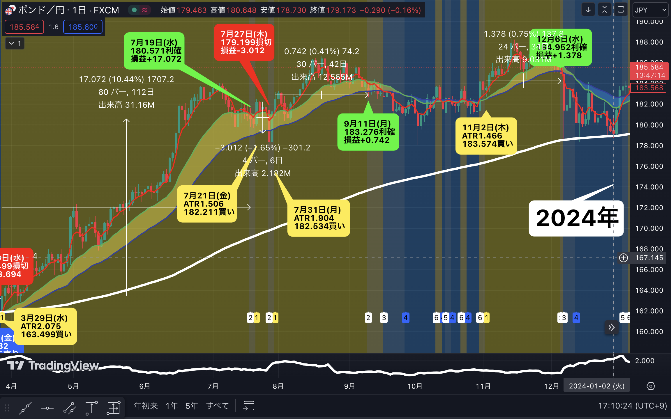 これらの考えを元に作ったトレードルールの過去検証データを公開しているので、そちらを参考にしてください。