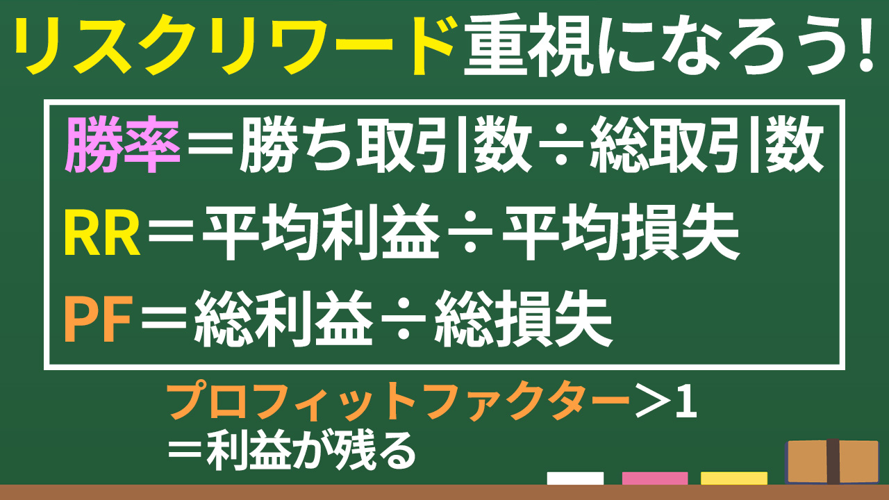 作ったルールである程度トレード回数を重ねたら、勝率・RR・PFを確認し、改善の余地を探り、ルールをブラッシュアップしていきます。