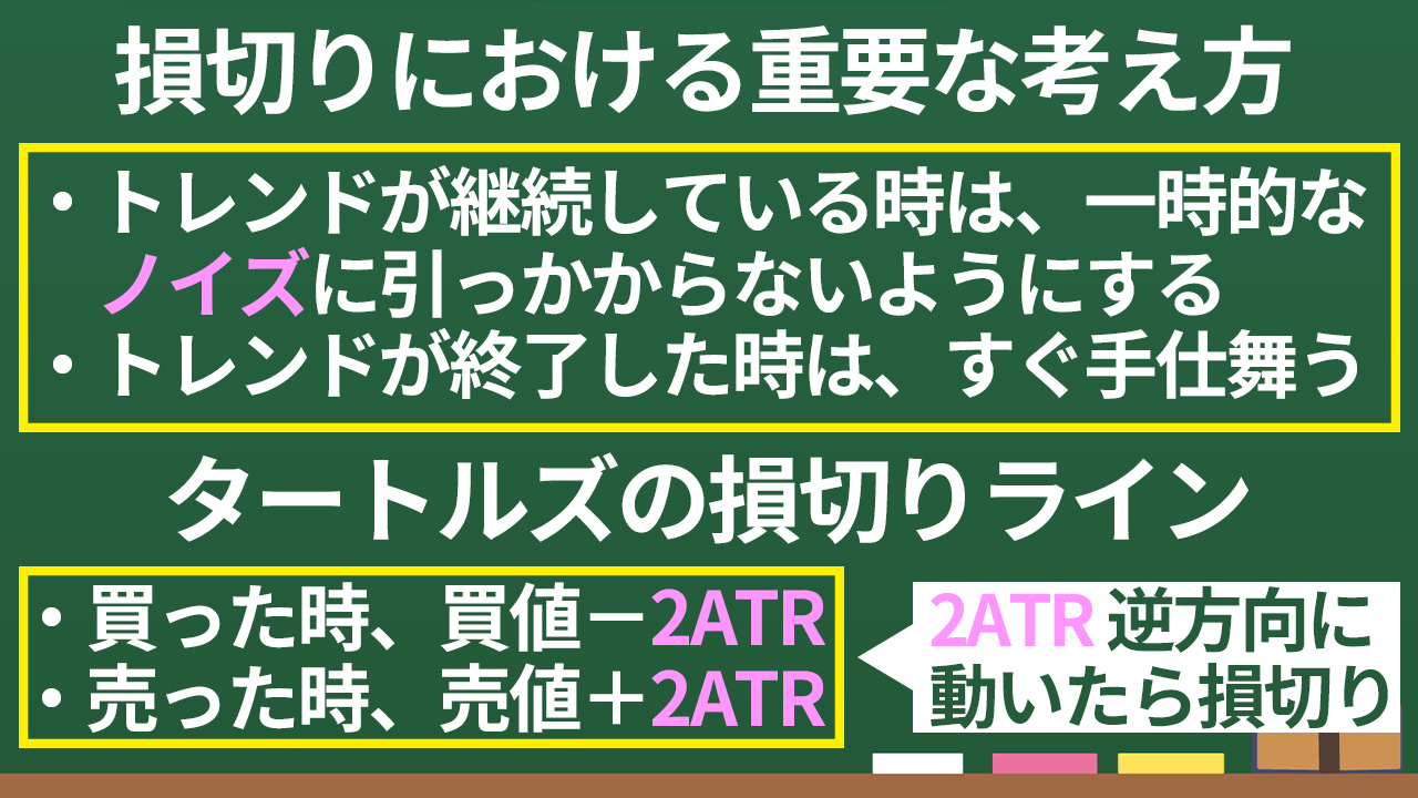 タートルズの考え方に基づき、損切りは2ATR