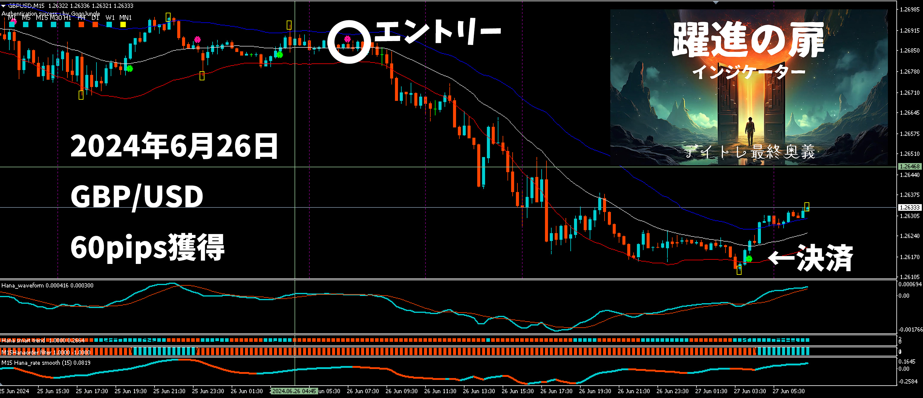 こんな時でも、「躍進の扉」を使えば、それらの考察をしなくとも、しっかりタイミングを表示してくれますので、サイン通りにエントリーすればOK!本当に楽です!