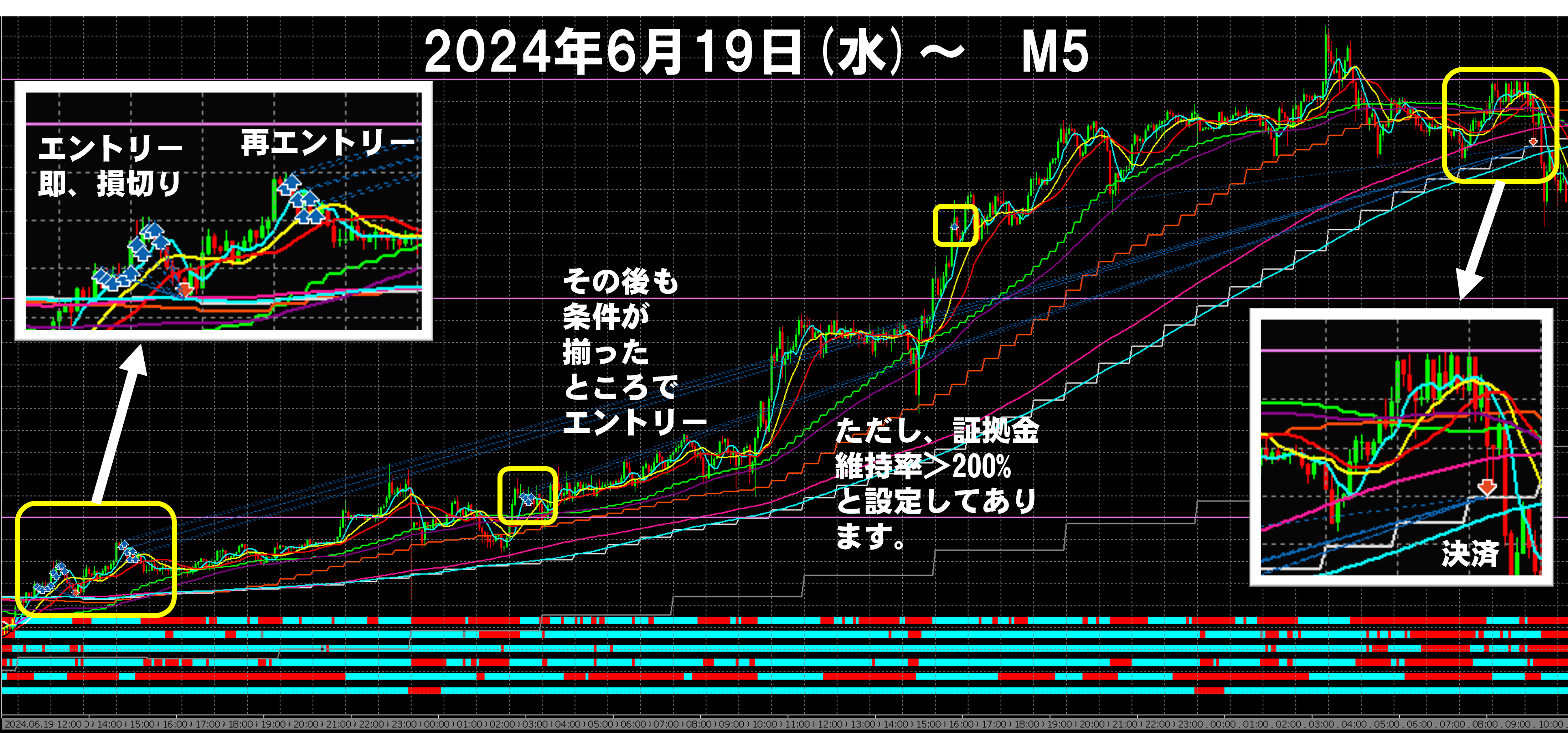 エントリー → 損切 → エントリー → 利確 と続きました。