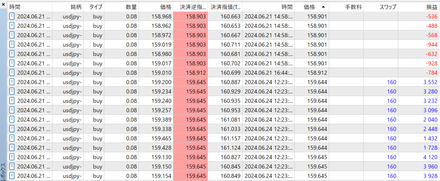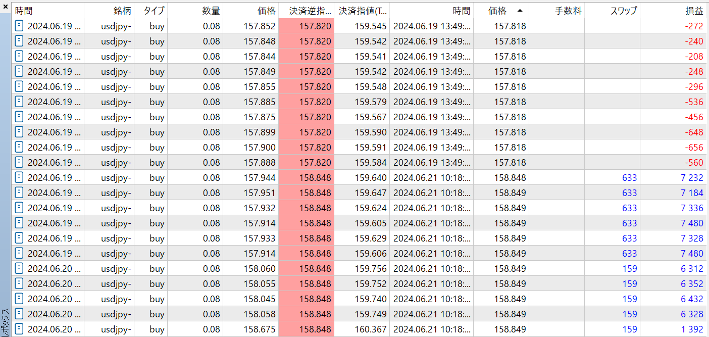 利確 34,576円、うちスワップ1,760円(0.08Lot × 11)
