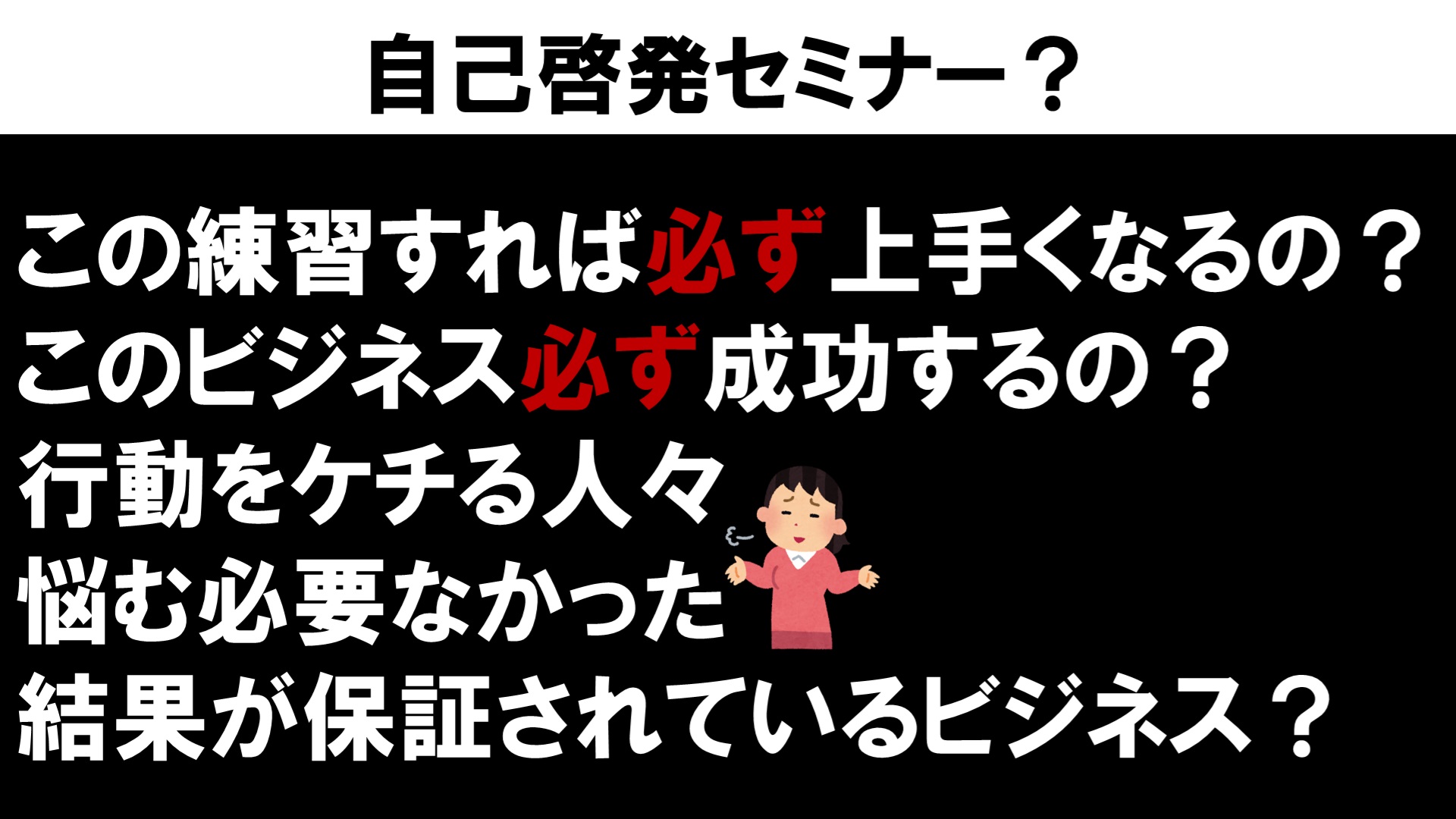 例えばスポーツの世界で「本当にこの練習を続けていれば上手くなるのかなぁ?次の試合で勝てるのかなぁ?」とか、ビジネスの世界で「本当にこのやり方で合ってるのかなぁ…」のようにウジウジと悩んでばかりで前に進めない人っていますよね。結果が保証されていないと身動き取れない人。みなさん想像してみて欲しいんですが、そのような行動をケチる人がスポーツやビジネスの世界で成功できると思いますでしょうか?