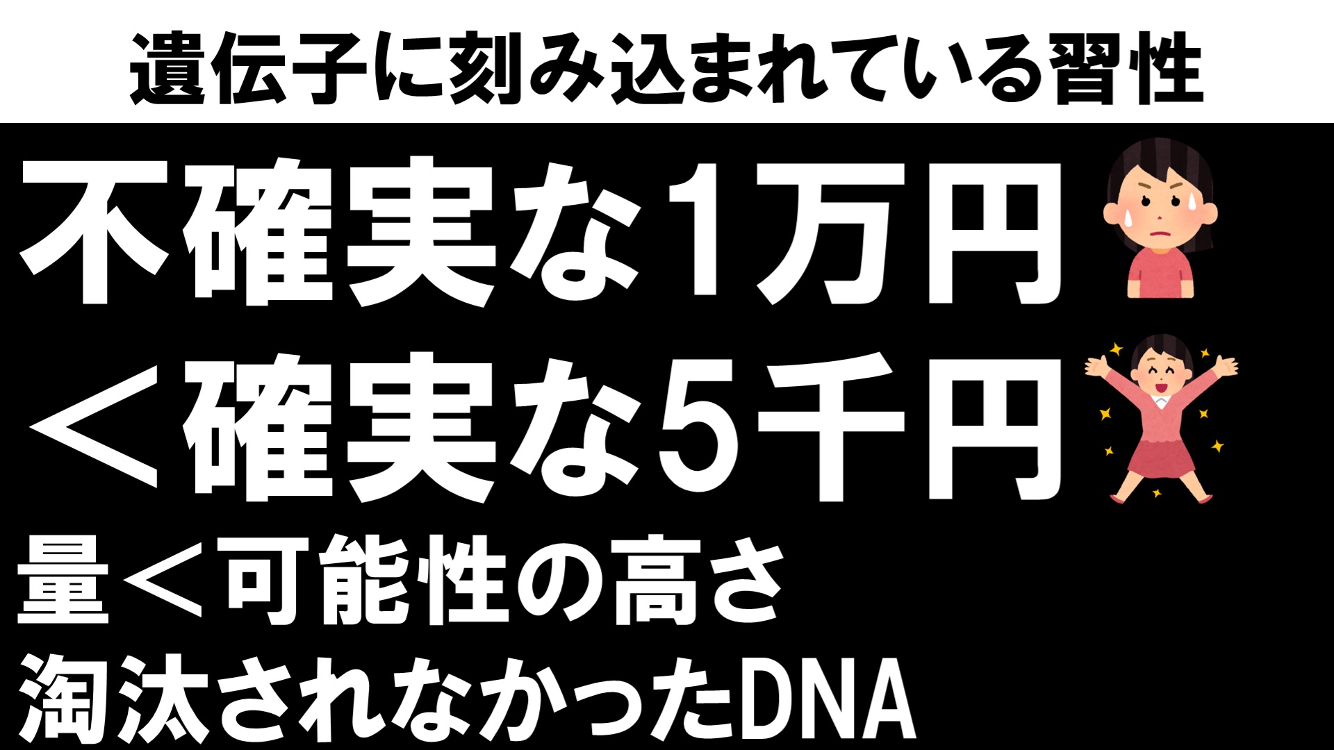 つまり現在生き残っている我々人間を含む動物は、不確実性を嫌うようDNAに刻み込まれているんですね。