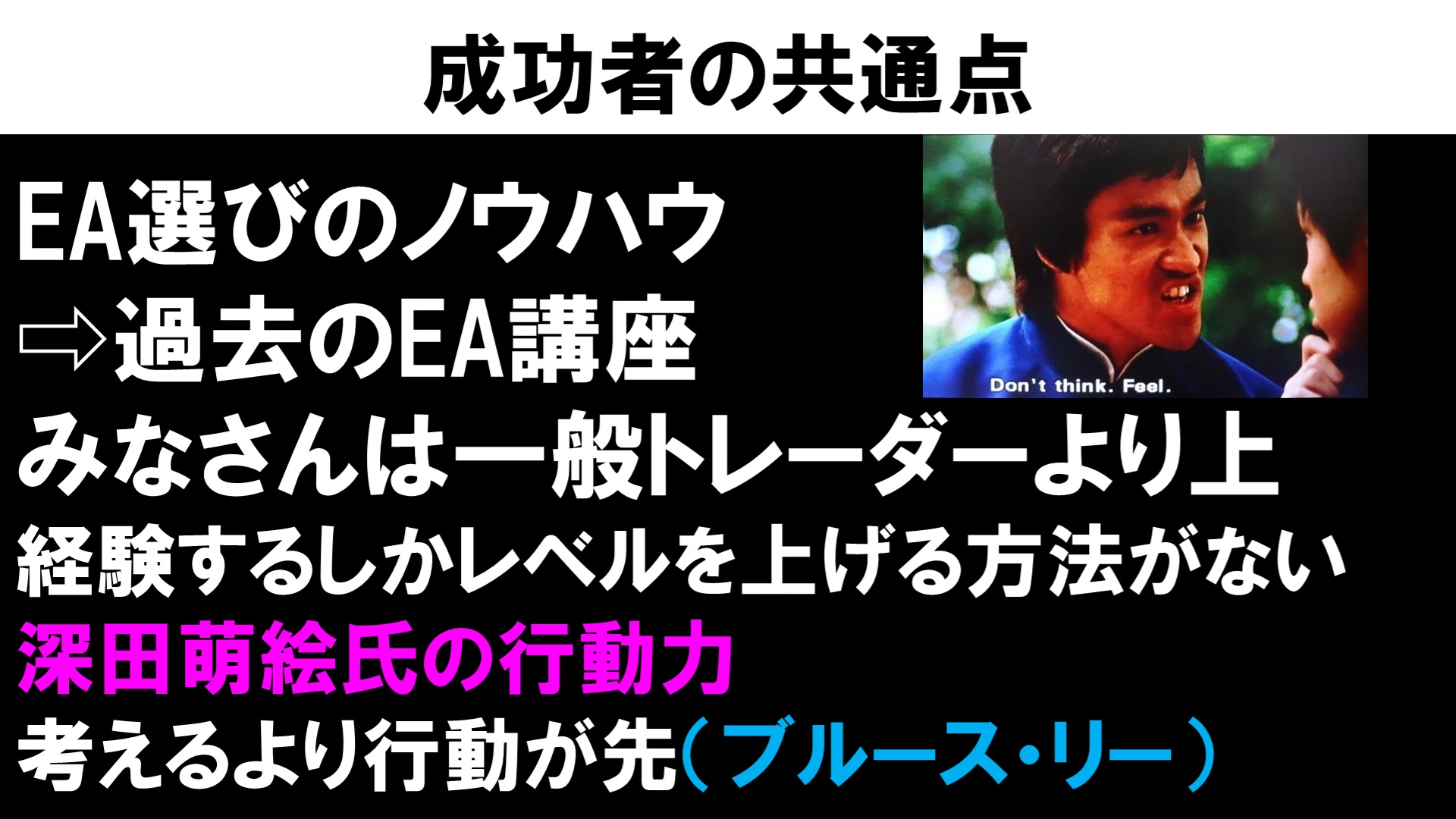 自動売買も同じです。取り敢えず何か動かしてみてください。どのような基準でEAを選べばいいのか?のノウハウはこれまでの講義で話してきましたので、既にみなさんはEAについて最低限の知識は持っているのです。