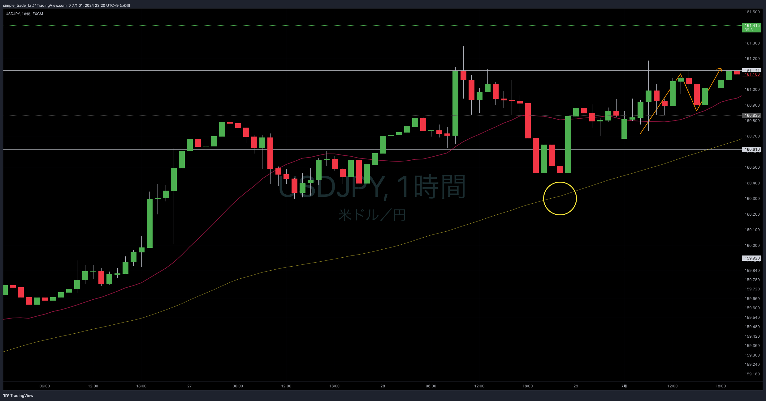 月足週足はひたすら円売りで上げ続けていて真空地帯に入ってきているところなので、160円台にも入って来てかなり高値圏というのは頭に入れた上で、