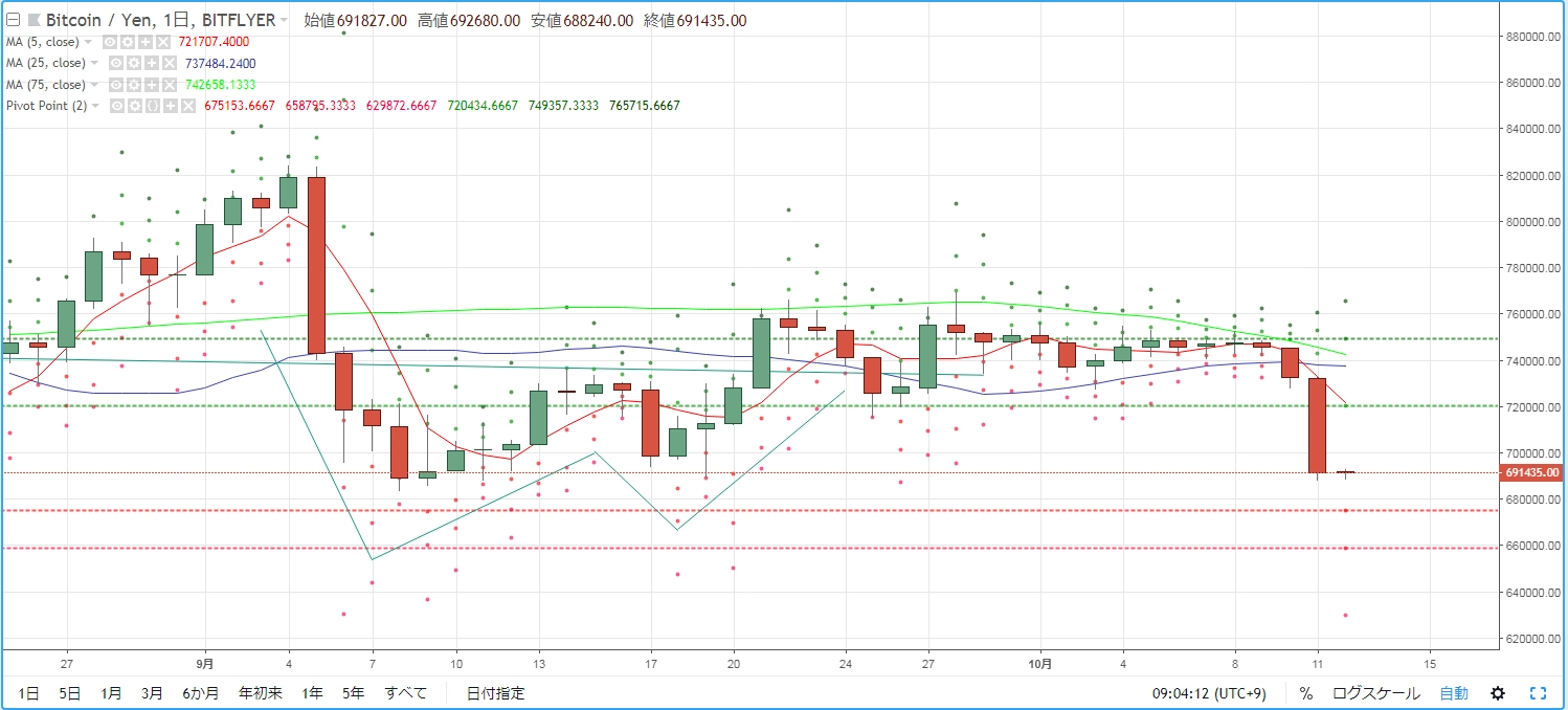 coinmarketcap(コインマーケットキャップ)のサイトから、ドミナンス(各銘柄が仮想通貨全体の時価総額に占めるパーセンテージ)を定点観測していきます。仮想通貨全般が下方向に大きく動き出している相場状況を受け、毎日更新することとし、仮想通貨業界を俯瞰および転換期を早期に発見することを目的とします。
