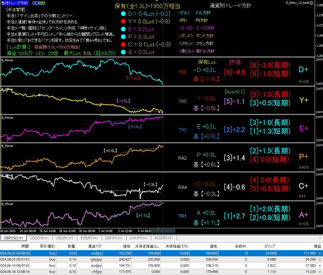 そして、下段には、トレード中の収益が記載されています。
