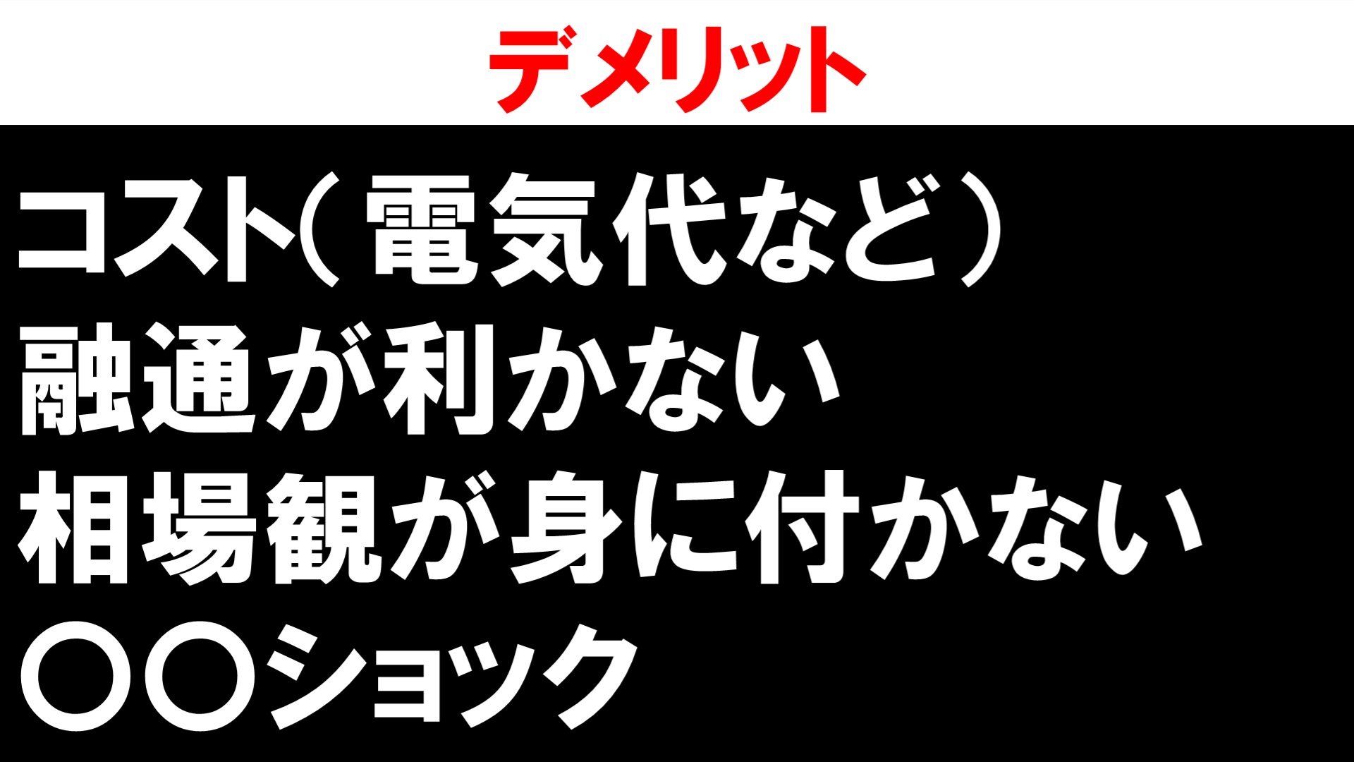 - 相場観が身に付かない 投資信託など他人にお金を預けて運用して貰うのと同じで、自分の相場観やトレードスキルが上がりにくい。