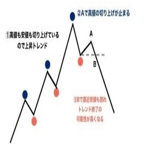 しかし、高値を更新することなく下落に転じたAの場面では、上昇トレンドに陰りが見えています。