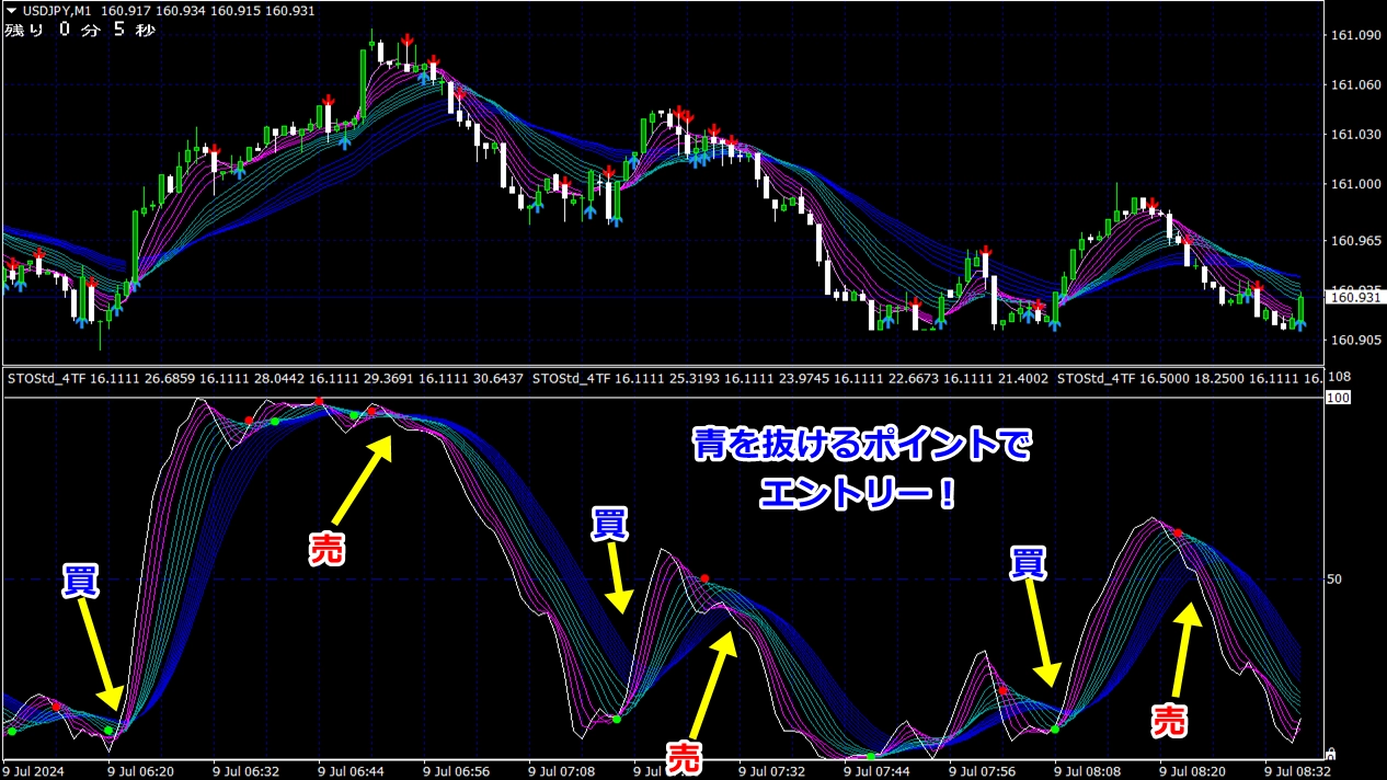 従いまして、上昇にしろ、下落にしろ、エントリーのねらい目は