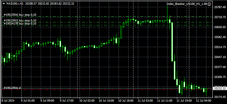 NASDAQ用ブレイクアウトEA「Index Breaker US100」昨日の利確後にNASDAQは急落しましたね