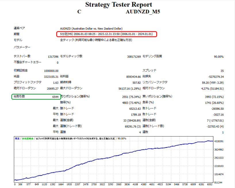 取引回数はバックテスト期間と総取引回数を見比べて判断します。