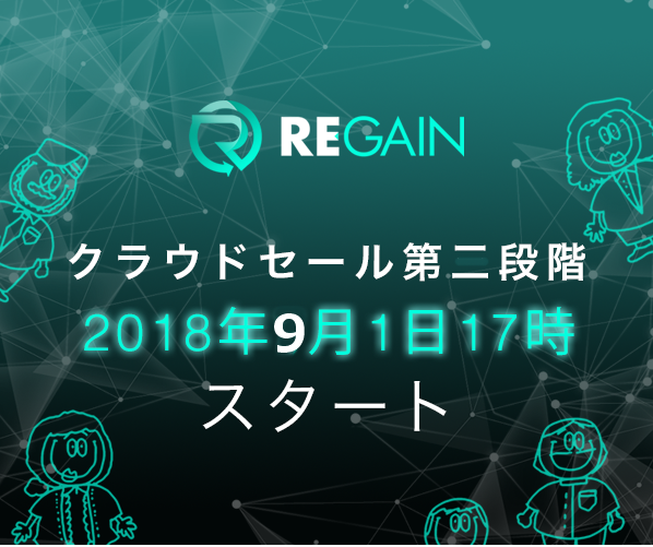 REGAINの第四弾セールは、「2018年10月1日」から始まりました。ただし始めの2週間はこれまでトークンを購入した方に優先権がありますので、初めて購入される方は、「2018年10月15日17時~」となります。