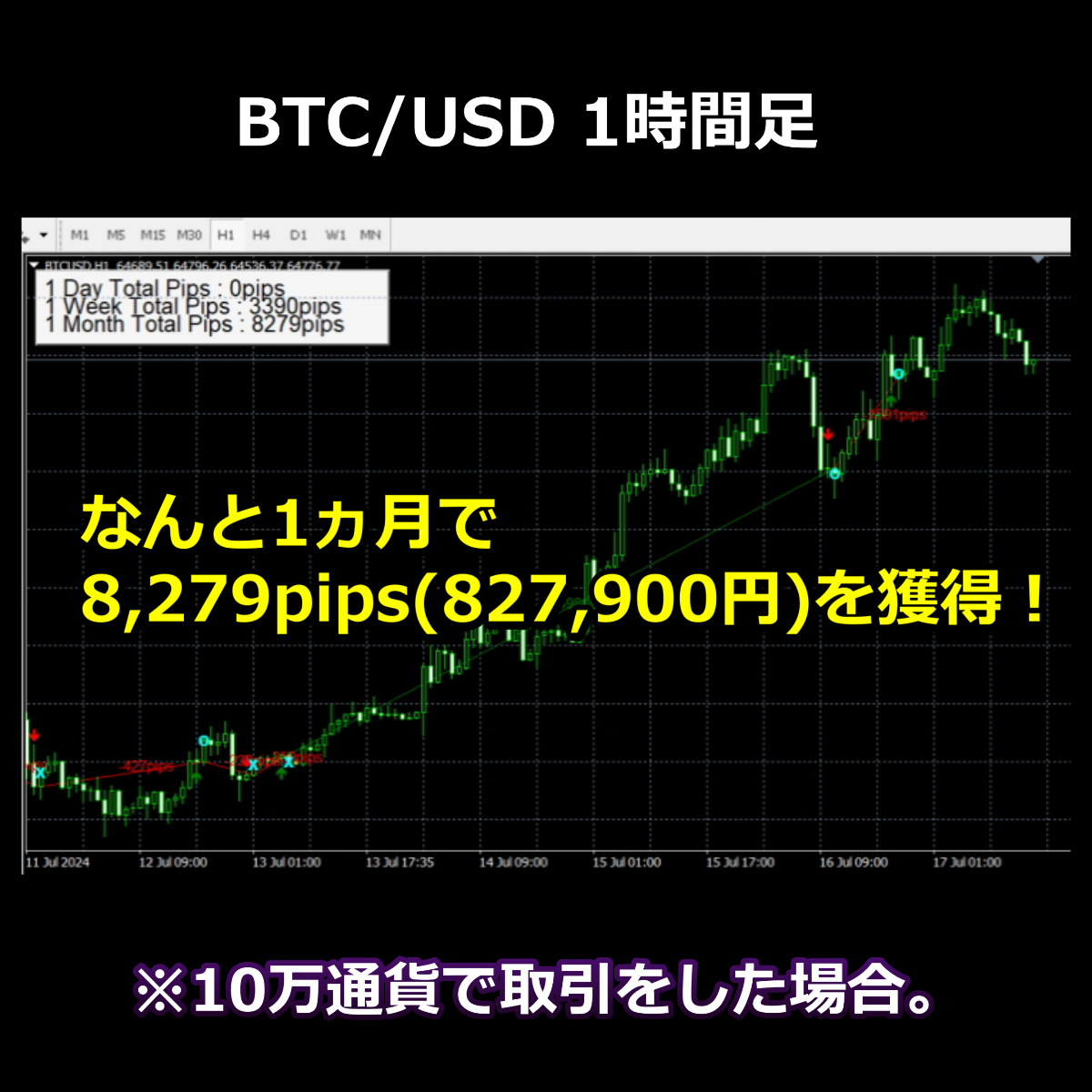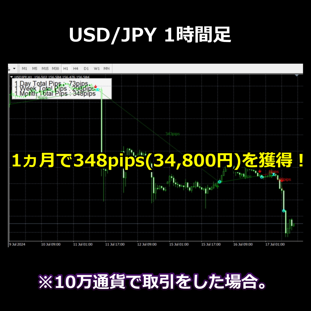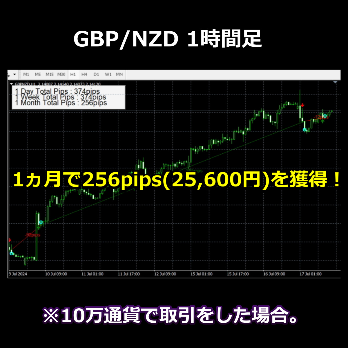 売買サインインジケーター。月間5,000pipsを獲得の2024年7月17日の実績になります。