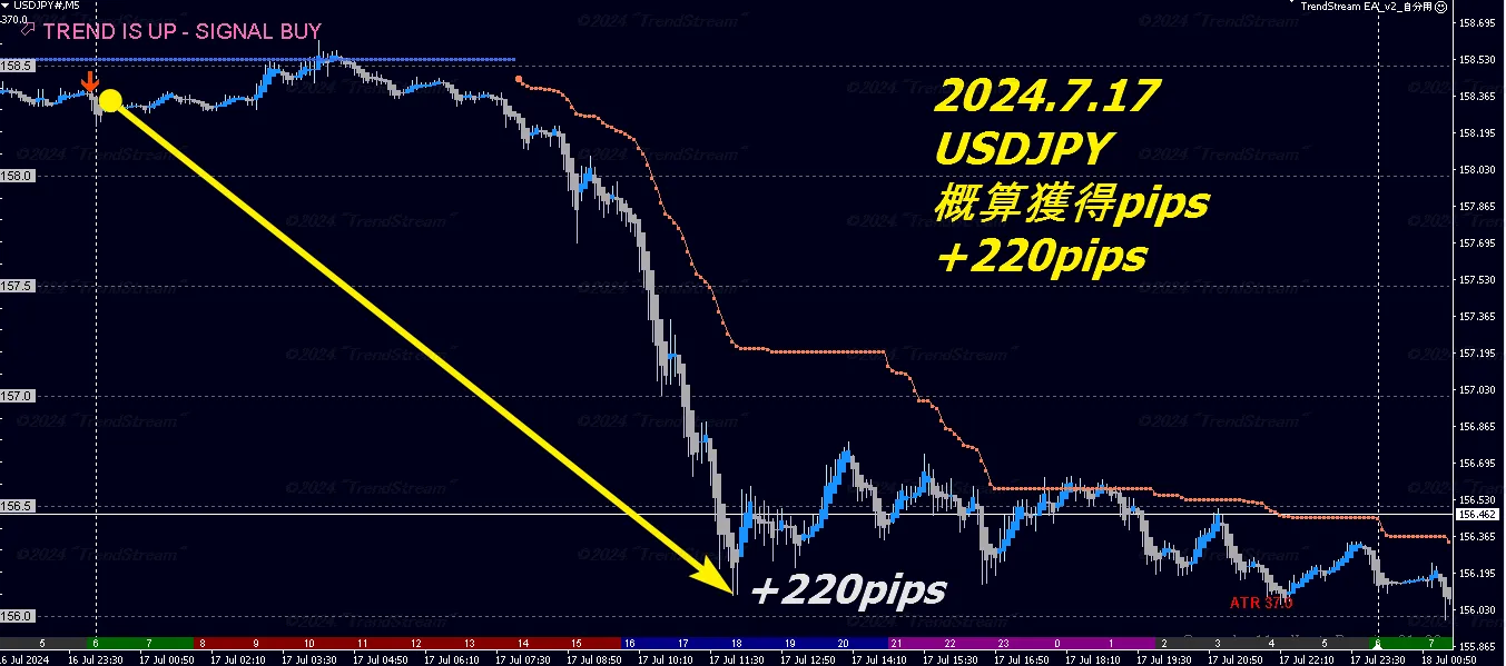 裏技5分足デイトレ GOLD +110pips / USDJPY +220pips / GBPJPY +230pips 2024.7.17『過去検証結果』