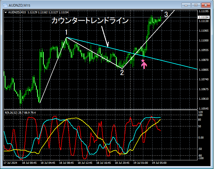 【第3波狙い】カウンタートレンドラインとmBDSR(RCI2本フィルター)の押し目買いサイン