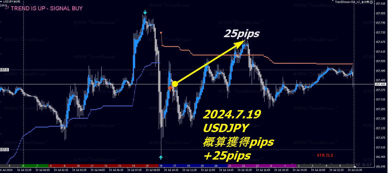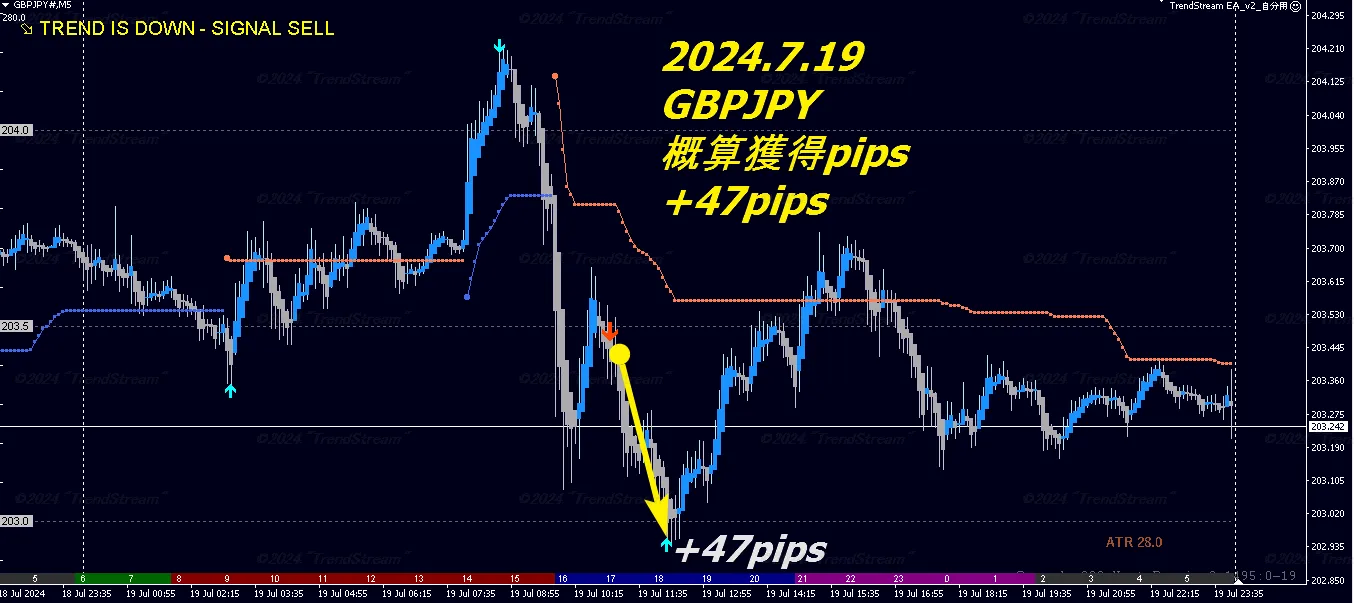 【5,000円オフクーポン付き】裏技5分足デイトレ GBPJPY+47pips / USDJPY +25pips(他トレードなし)『過去検証結果』7.31(水)まで ”TrendStream” 新規ご購入特典キャンペーンで決済用トレールEAが無料特典!