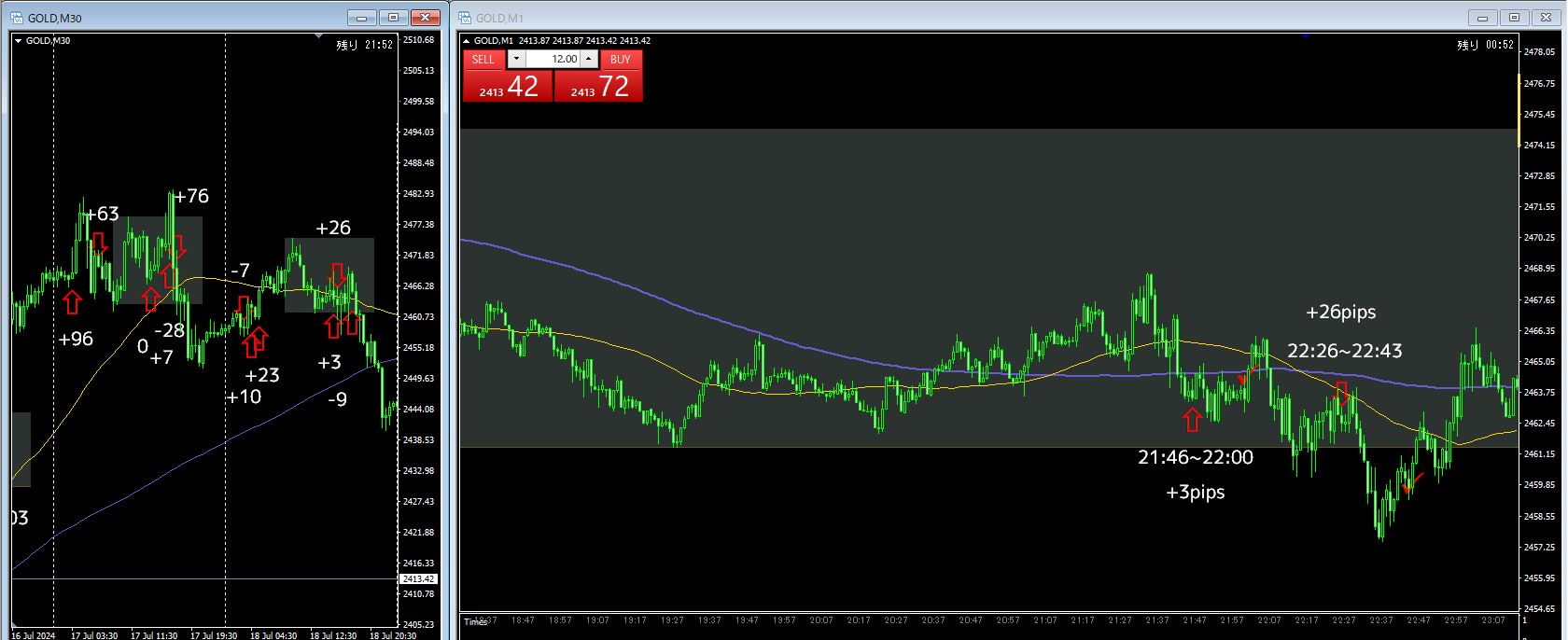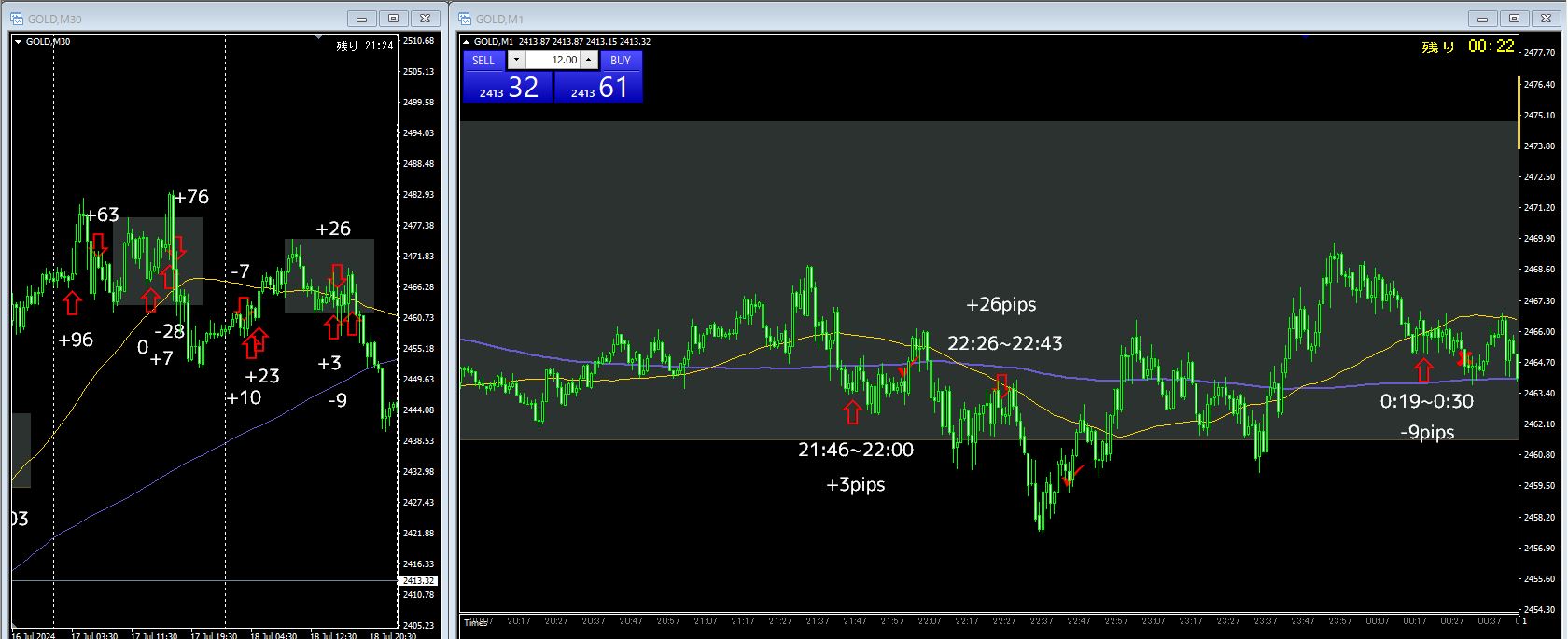 6戦4勝2敗 +46pips(-7 / +10 / +23 / +3 / +26 / -9)