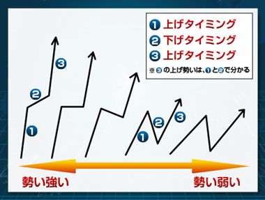 次の上げ(③)では勢いよく上げる確率が高まります。