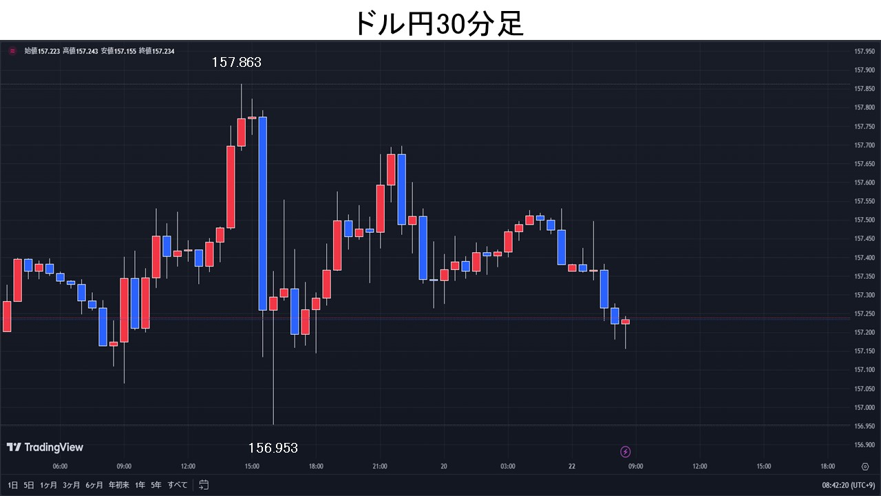 世界規模のシステム障害でリスク回避の円買い、ドル円は一時157円割れ。