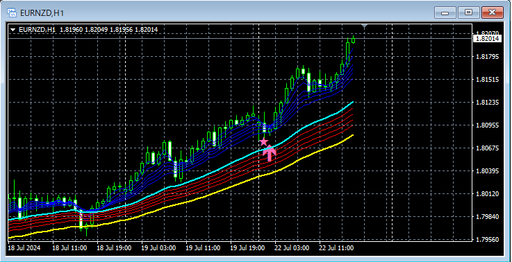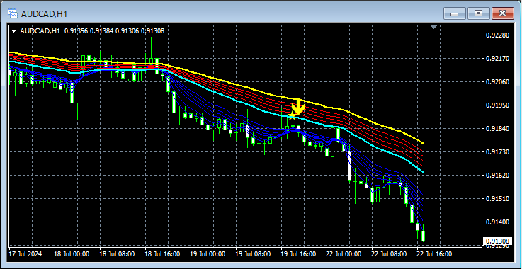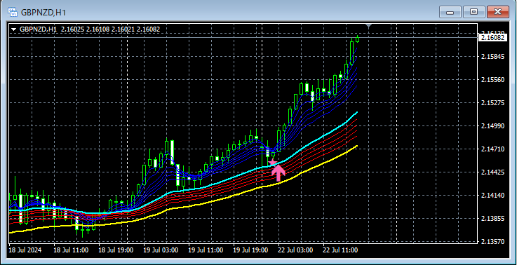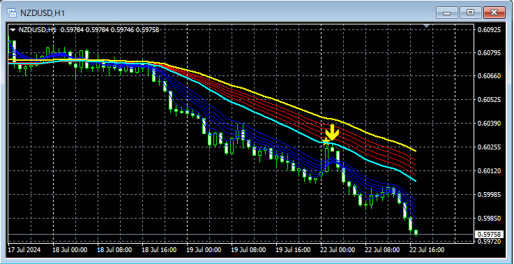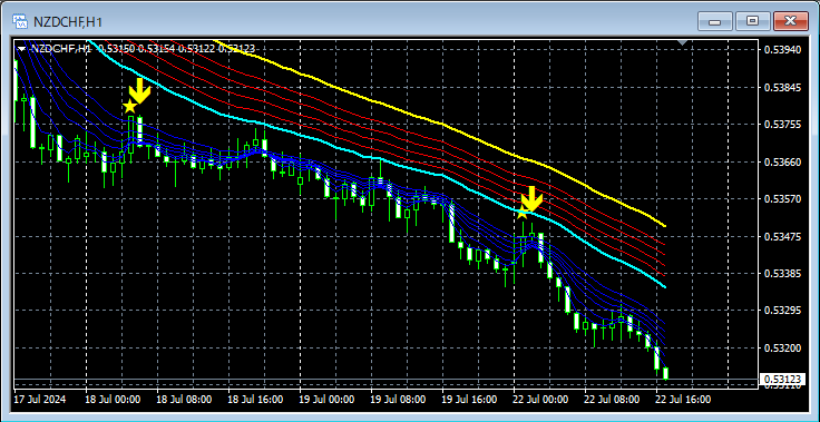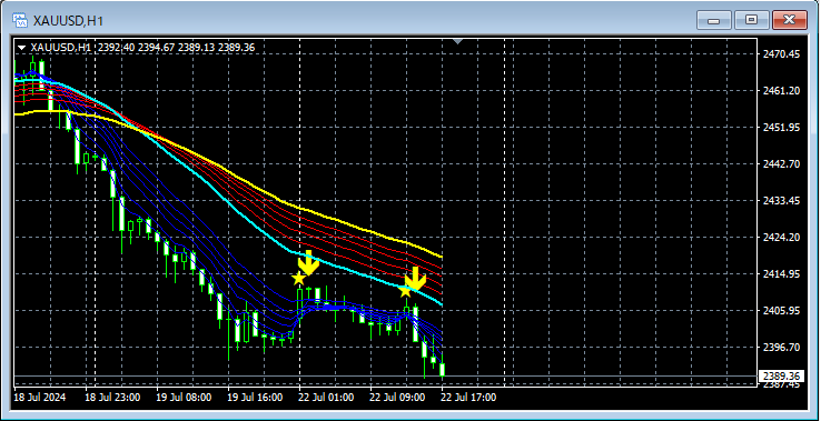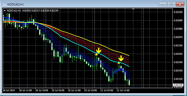【トレンドを追いかけるなら...】mBDSR(移動平均線フィルター)のサインとGMMA 昨日(2024年7月22日)のチャートから