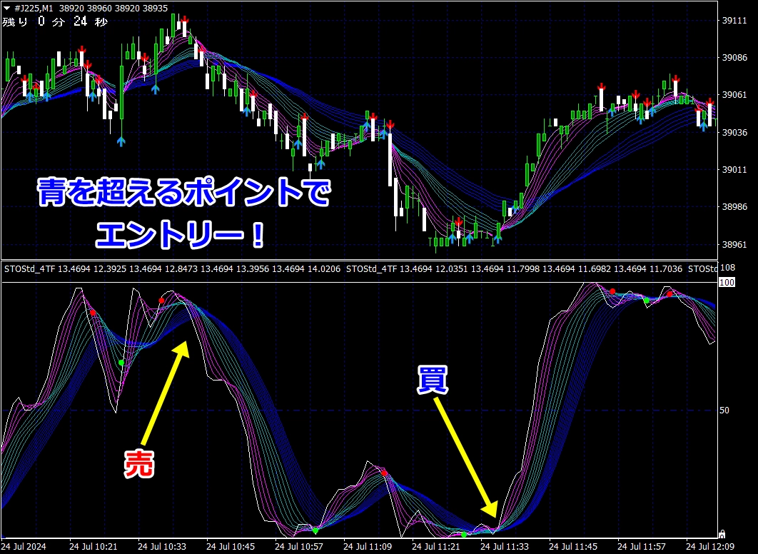 従いまして、上昇にしろ、下落にしろ、エントリーのねらい目は