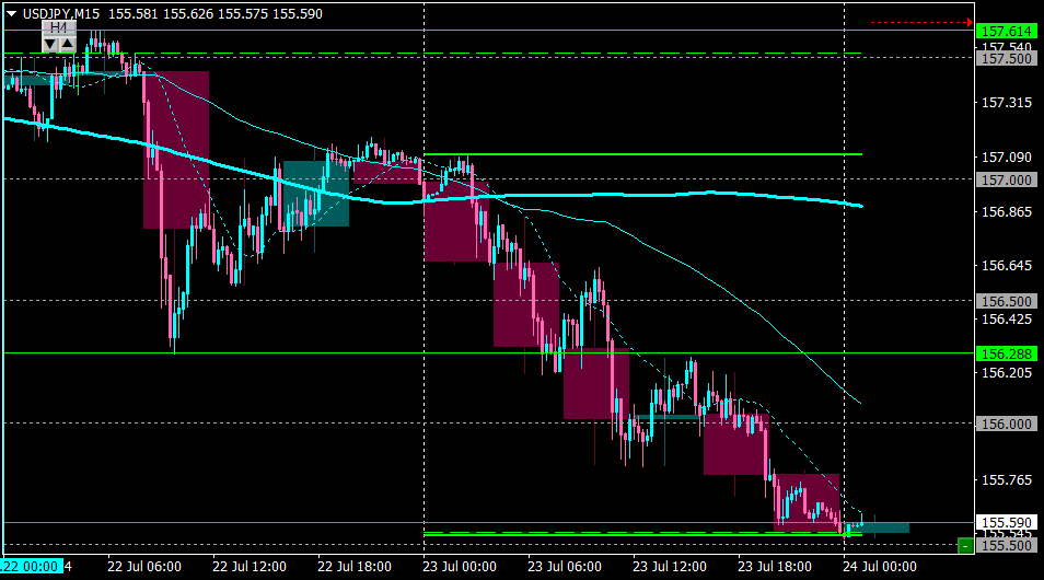 昨日は注目していた節目156.50を下抜いたが、日足レベルの押し目が近いためエントリーはできずノートレード。
