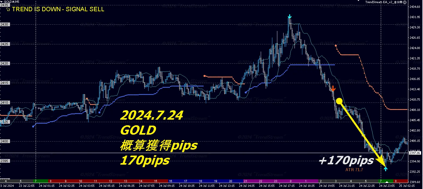 裏技5分足デイトレ GOLD +170pips (他トレードなし)2024.7.24『過去検証結果』