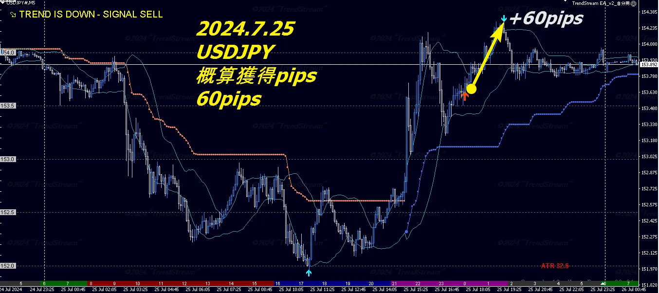 裏技5分足デイトレ GBPJPY +70pips USDJPY +60pips (他トレードなし)2024.7.25『過去検証結果』