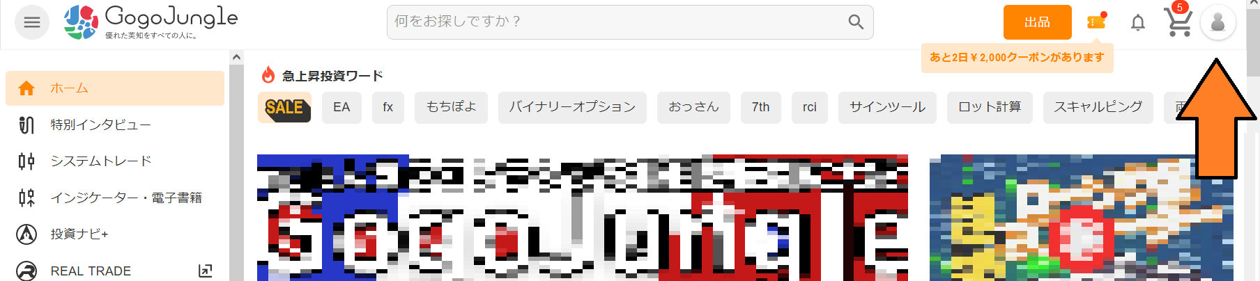 ゴゴジャンのトップページなどの右上にあるアカウント情報をクリックします。