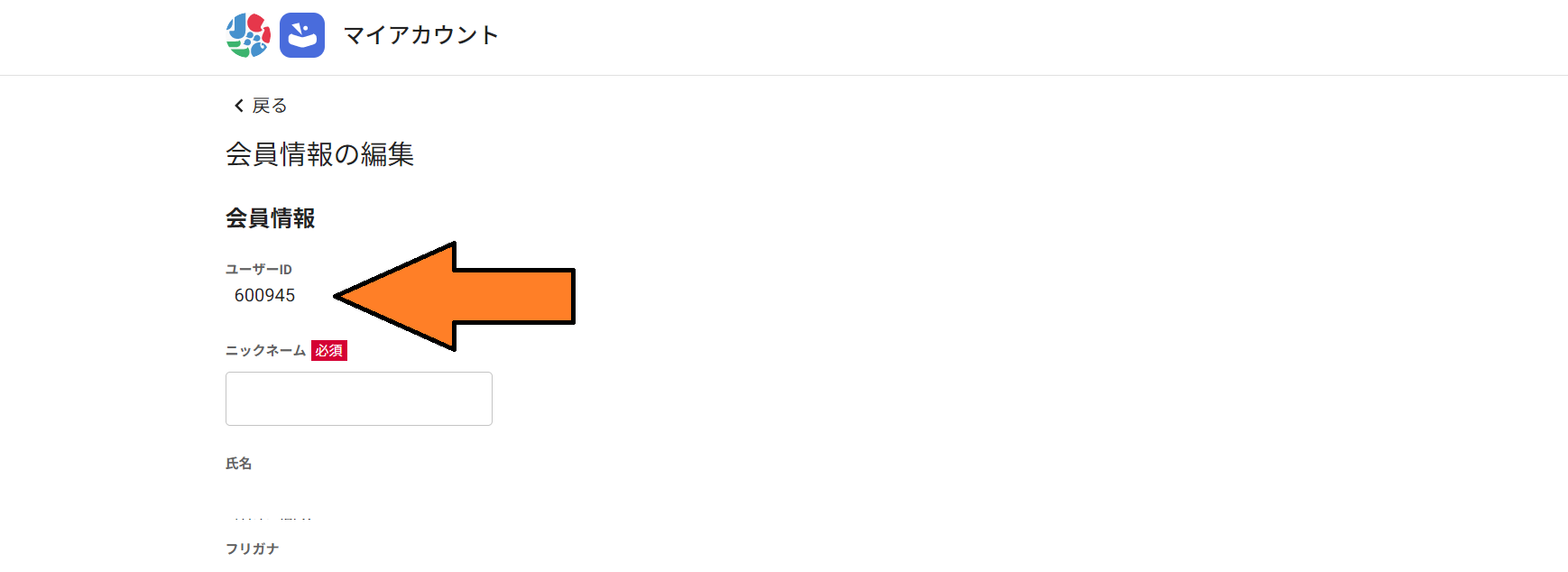 「会員情報の編集」の一番上にユーザIDがございます。