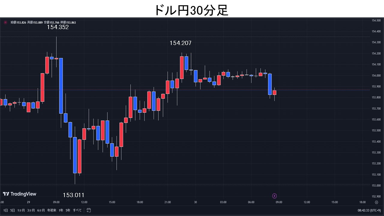 東京時間、ドル円は日経平均の上昇を受け154.35円まで上昇となるが、仲値にかけて本邦輸出企業からドル売りが入ると153.01円まで下落。欧州時間、独長期金利の低下を受けたユーロドル売りによるドル買いなどもあり、ドル円は買戻しが先行。NY時間、米10年債利回りが低下幅を縮小させたことなどを受け、ドル円は154.20円まで上昇。全般的には7/30-31の日銀金融政策決定会合・FOMCを控えて様子見の展開となった。