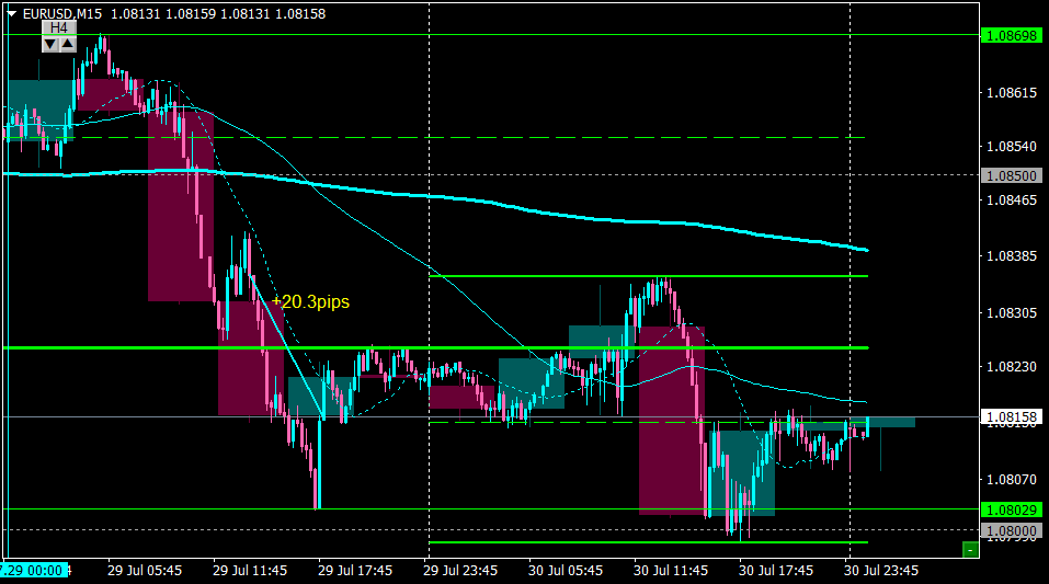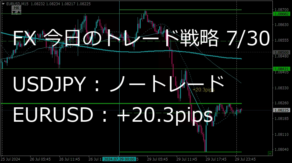 昨日は節目と考えていた1.0825を上抜いたが、すぐ上に戻り高値があり様子見。その後の下落もタイミングが取れずノートレード。