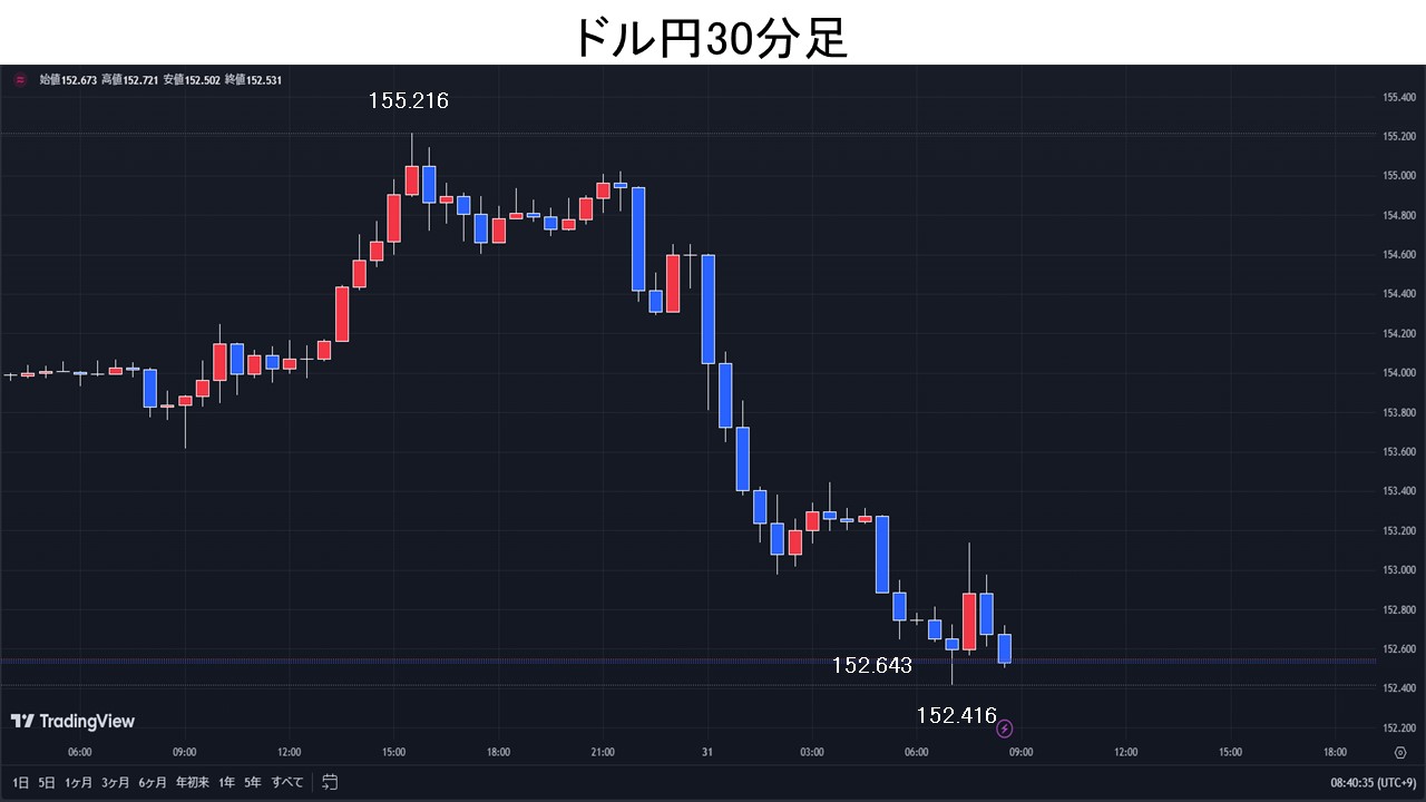 東京時間、ドル円は本邦輸出企業のドル売り観測で153.63円まで下押しとなるが、ゴトー日(5・10日)の仲値でドル買いが入り、日経平均の上昇を受け買いが先行。午後に入り、「日銀の利上げに関する報道がないことで、利上げが見送られるのでは」との思惑でドル円は155.21円まで上昇。欧米時間、NHKが「日銀は金融政策決定会合で現在0-0.1%の政策金利を0.25%程度に引き上げる案などを議論」と報じ、日経新聞が「日銀は追加利上げを検討するほか、国債買い入れを減額する量的引き締めの具体策も決める」と報じると、円全面高。ドル円は一時152.63円まで下落。