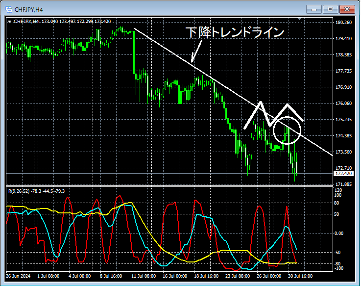 スイスフラン円 CHFJPY 4時間足