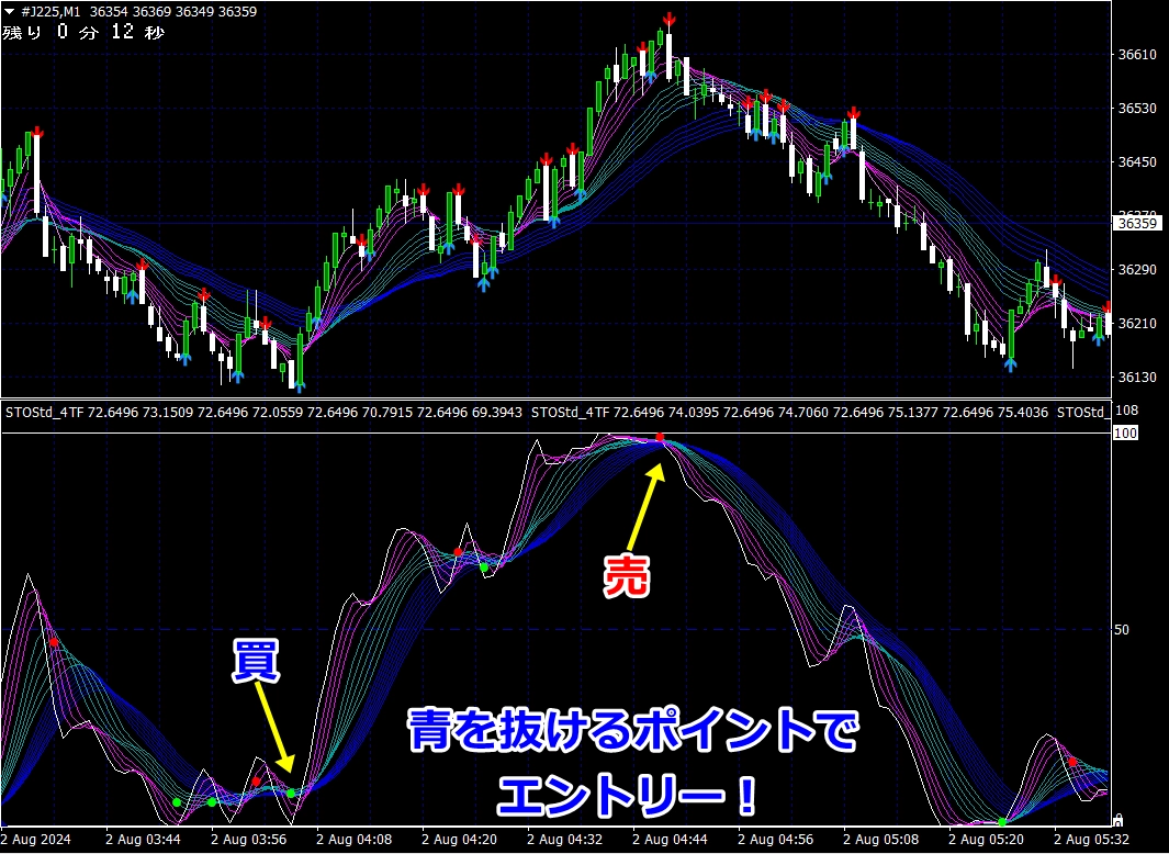 従いまして、上昇にしろ、下落にしろ、エントリーのねらい目は