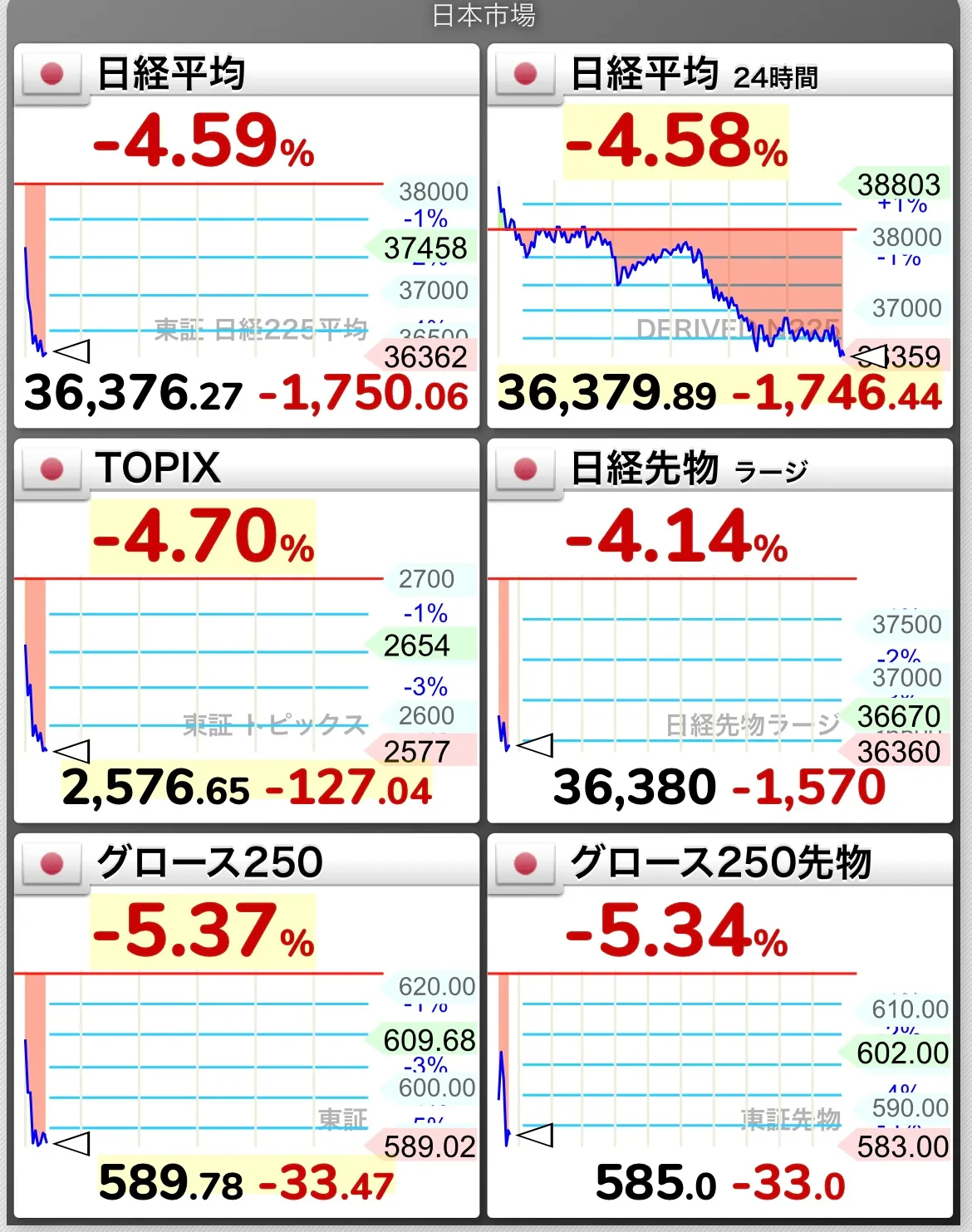日経平均は、最近の高値から約6,000円ほど下落しております。