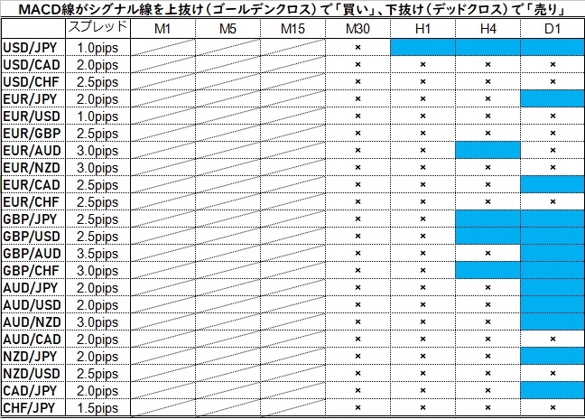 どの通貨ペア・時間足で通用するか?を検証していきます。