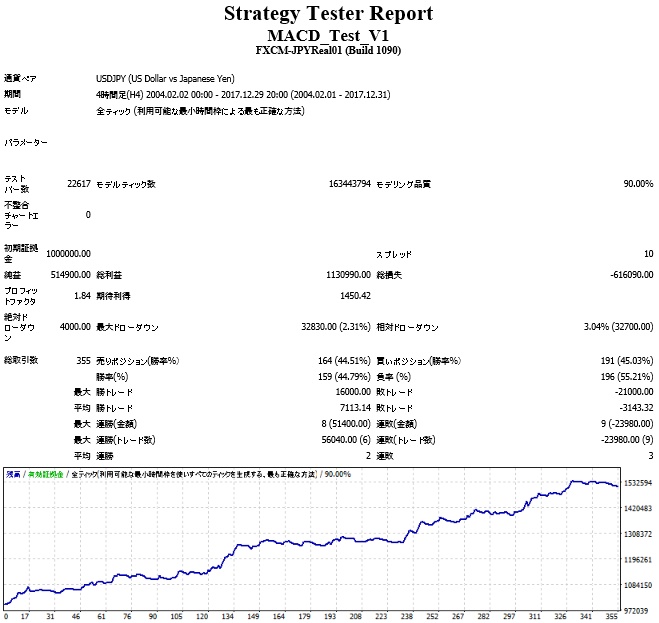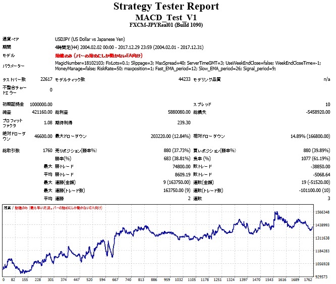勝率は50%未満、平均勝ちトレード>平均負けトレードなのでトレンドフォロータイプと言えるでしょう。