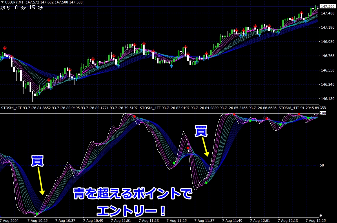 従いまして、上昇にしろ、下落にしろ、エントリーのねらい目は