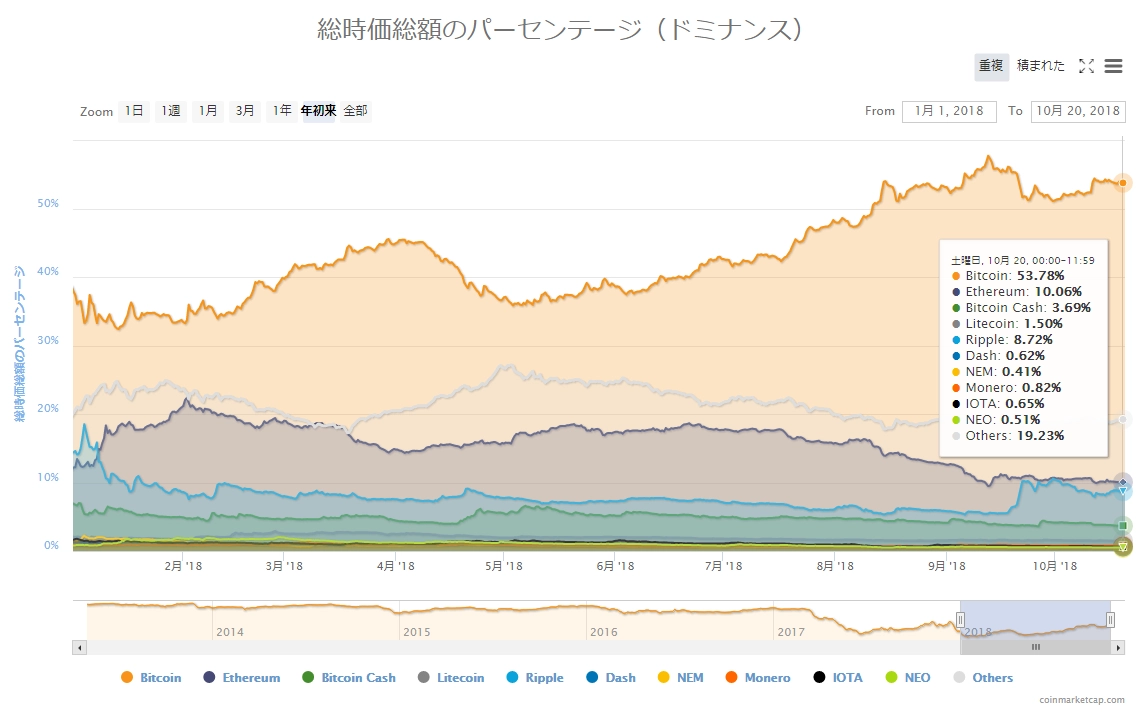 画像は2018年10月22日のキャプチャ。一昨日、昨日と2日連続で「緑」が目立った流れでしたが、今日は「緑」「赤」が半々くらいの割合となっています。いずれの銘柄も変動割合は小さいのが現状です。