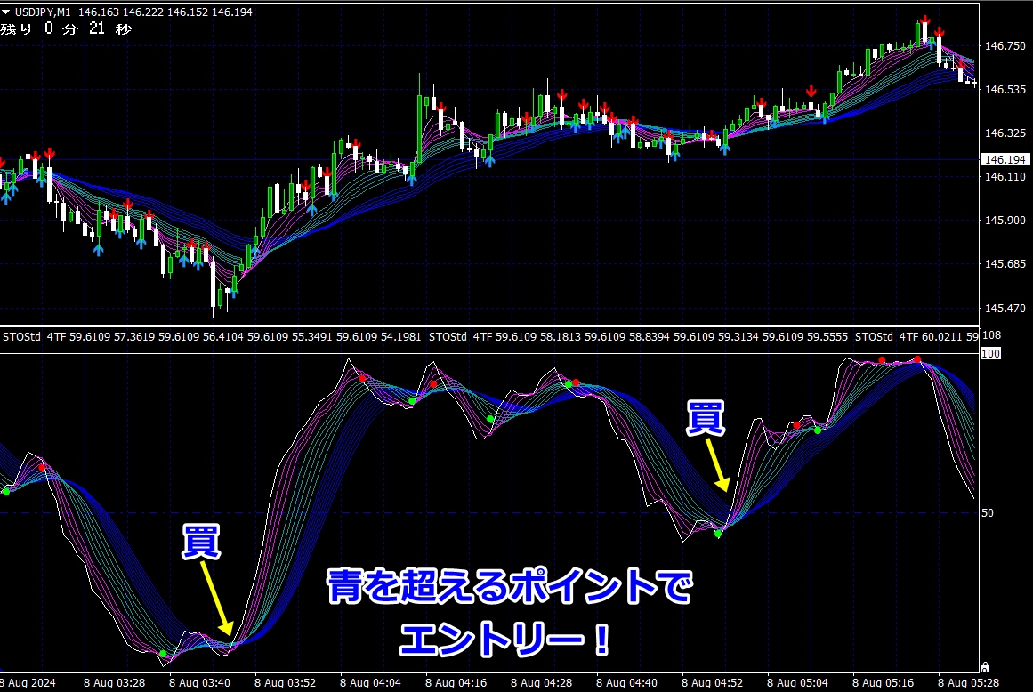 従いまして、上昇にしろ、下落にしろ、エントリーのねらい目は