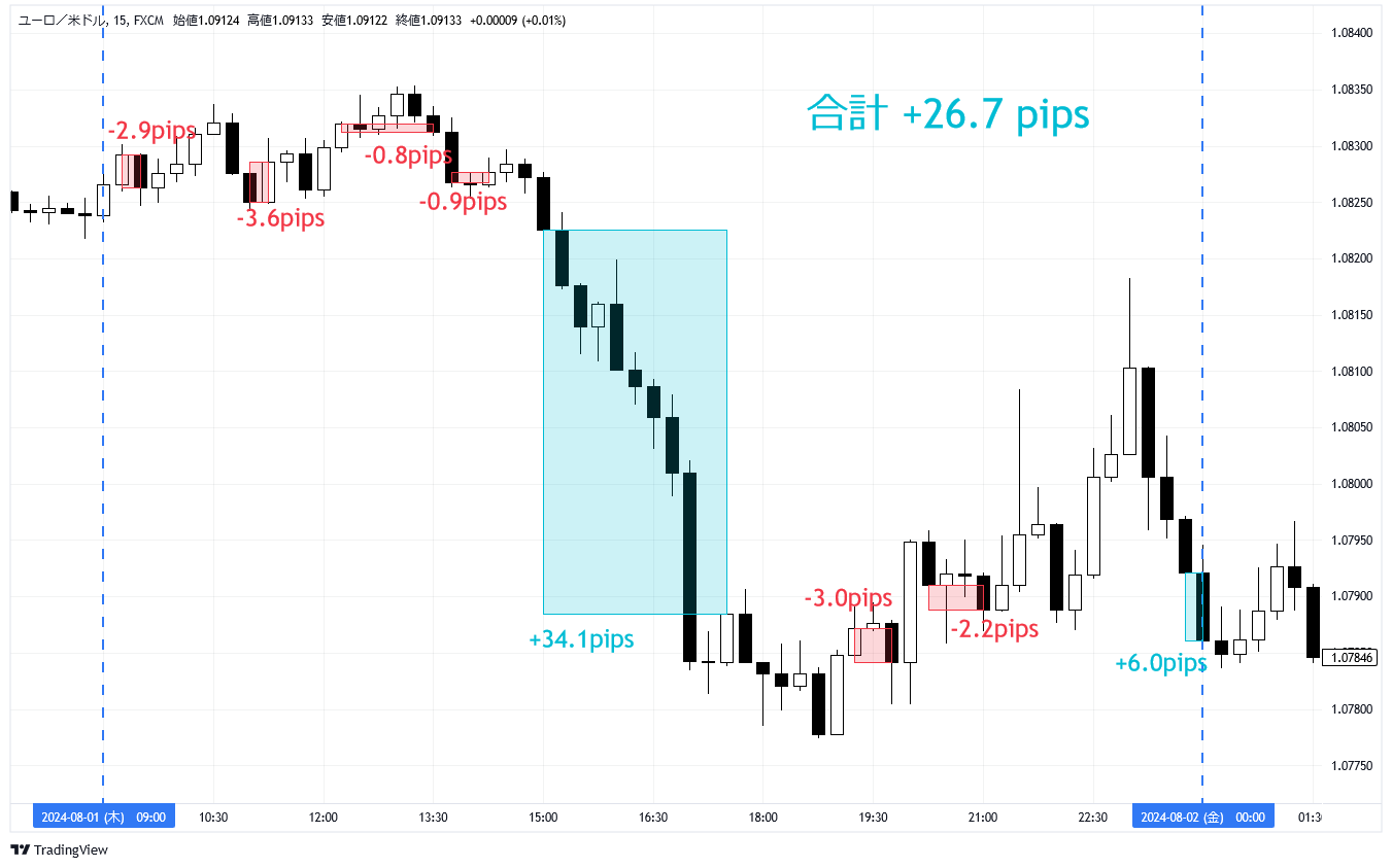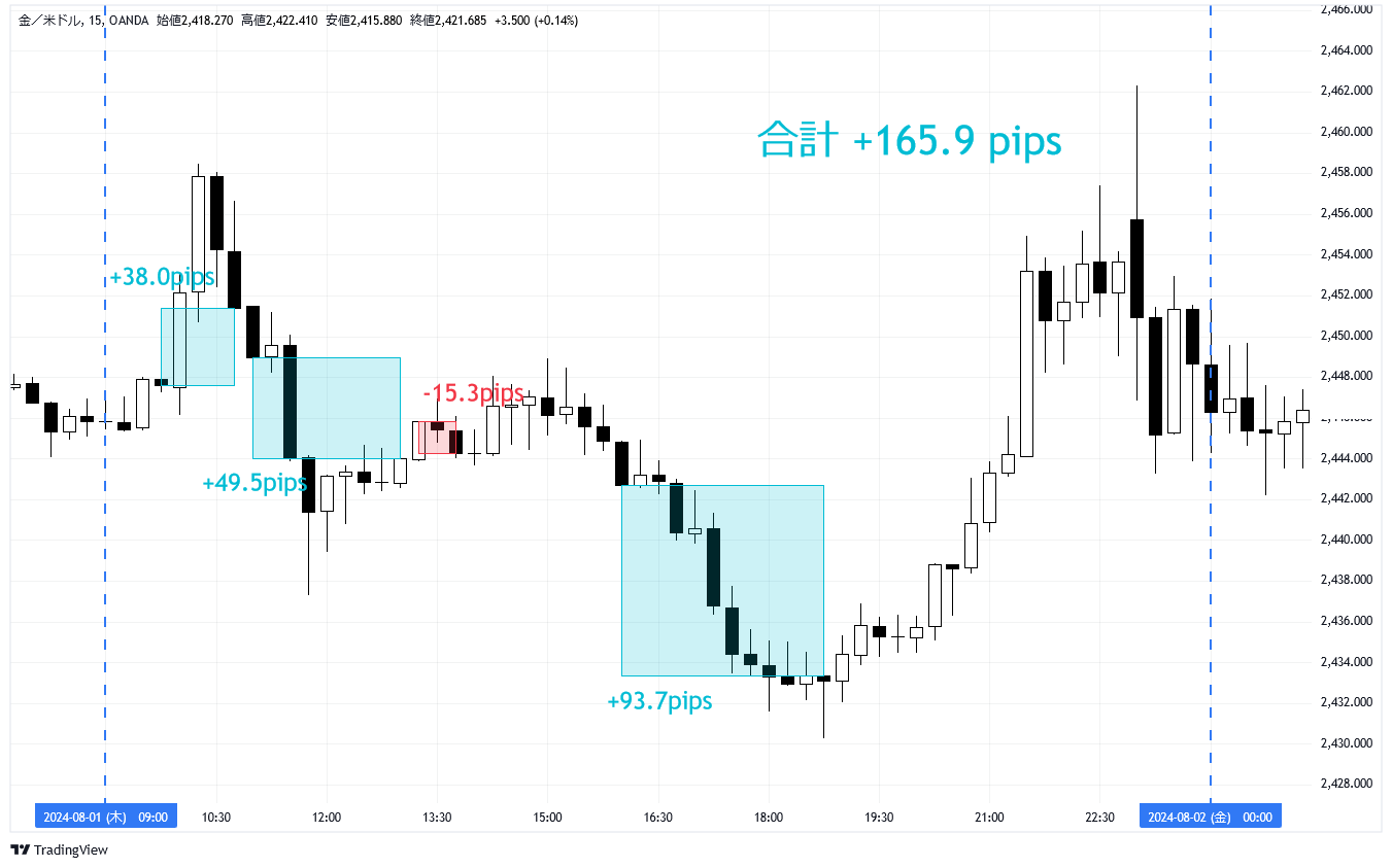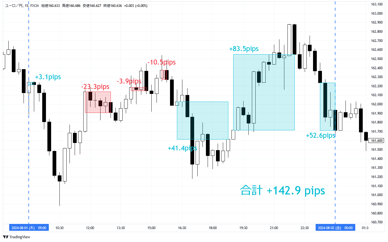 【検証条件】通貨ペア:ドル円、ユーロドル、ポンドドル ユーロ円、ポンド円、ゴールド時間足:15分足検証時間:9時から24時まで