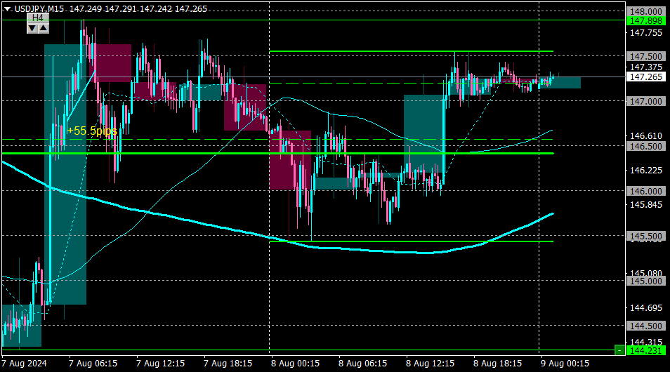 昨日は注目していた節目146.50を下抜いてしまったので、21:30の急騰後のエントリーは様子見をした。