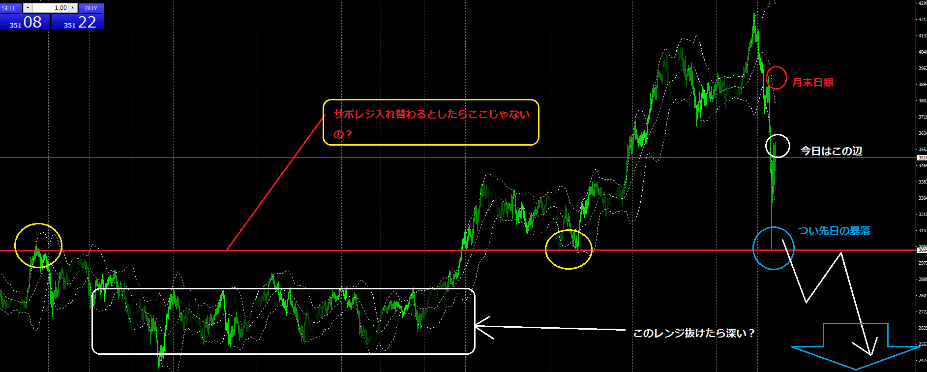 チャート上では、先月末の日銀様の会見から今日までの事を書いてあります