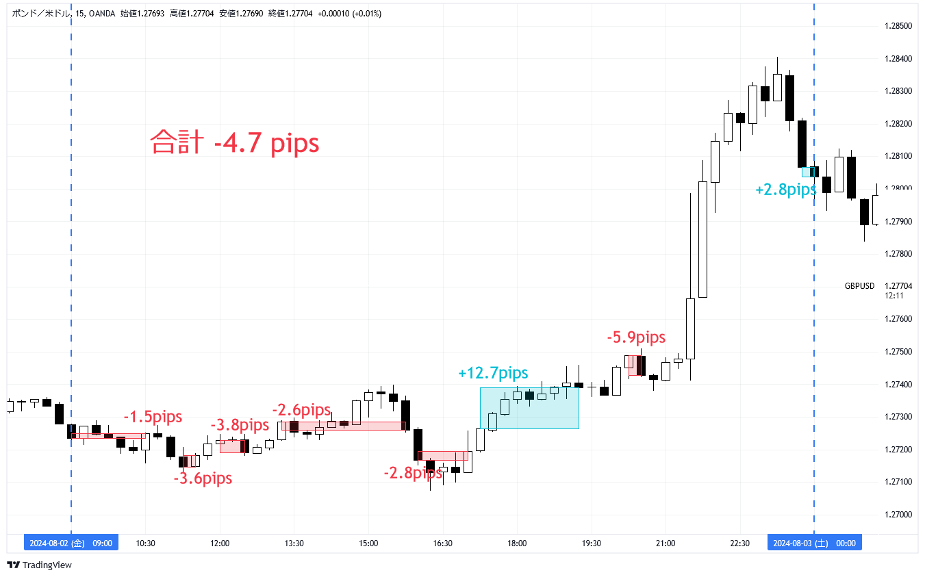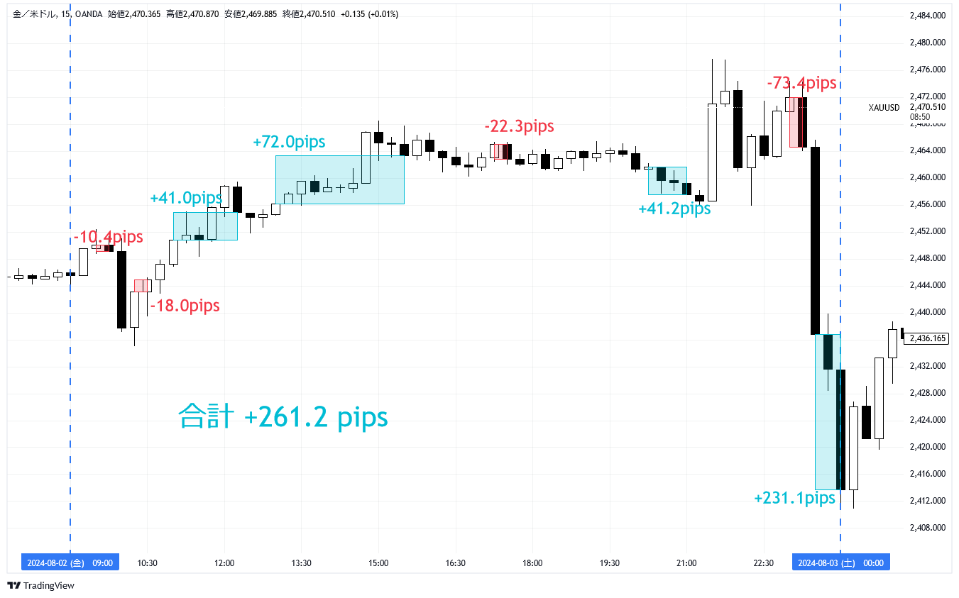 【検証条件】通貨ペア:ドル円、ユーロドル、ポンドドル ユーロ円、ポンド円、ゴールド時間足:15分足検証時間:9時から24時まで