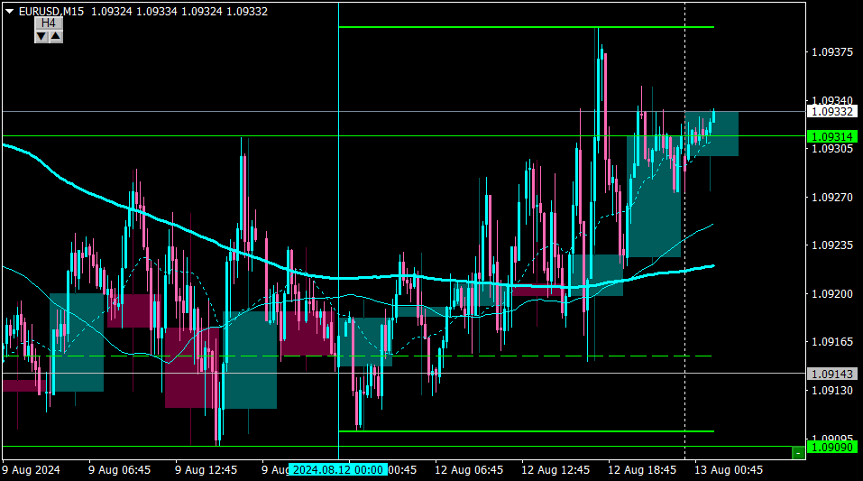 〇前日のトレード・USDJPY ドル円(15分足)昨日は先週安値141.50付近での値動きにとどまったためノートレード。・EURUSD ユーロドル(15分足)昨日は1.090付近でのプライスアクション