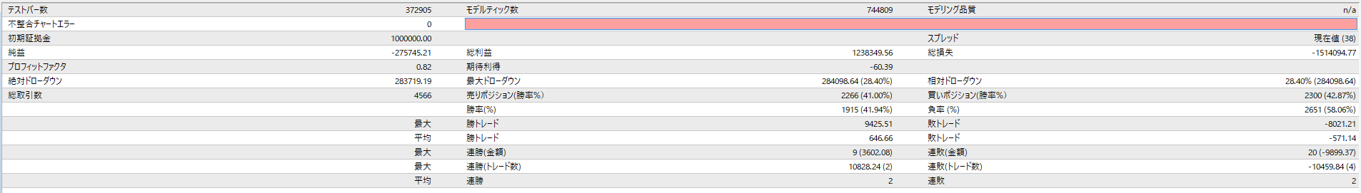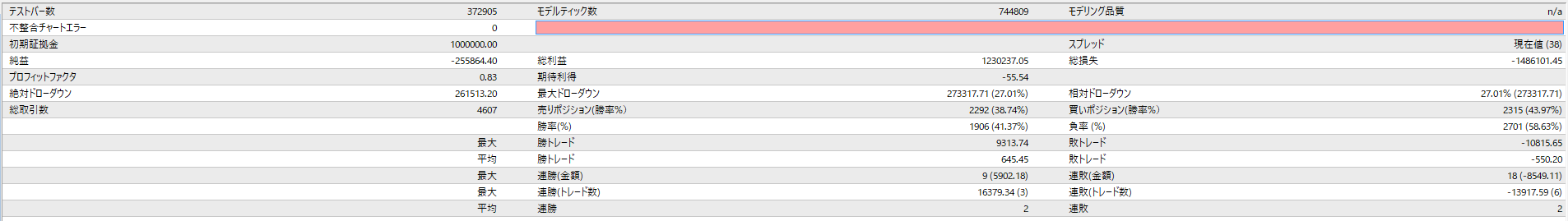 数値上は取引回数が多く期待できるかと思いましたが、このパラメータに関しては「ボツ」となります。