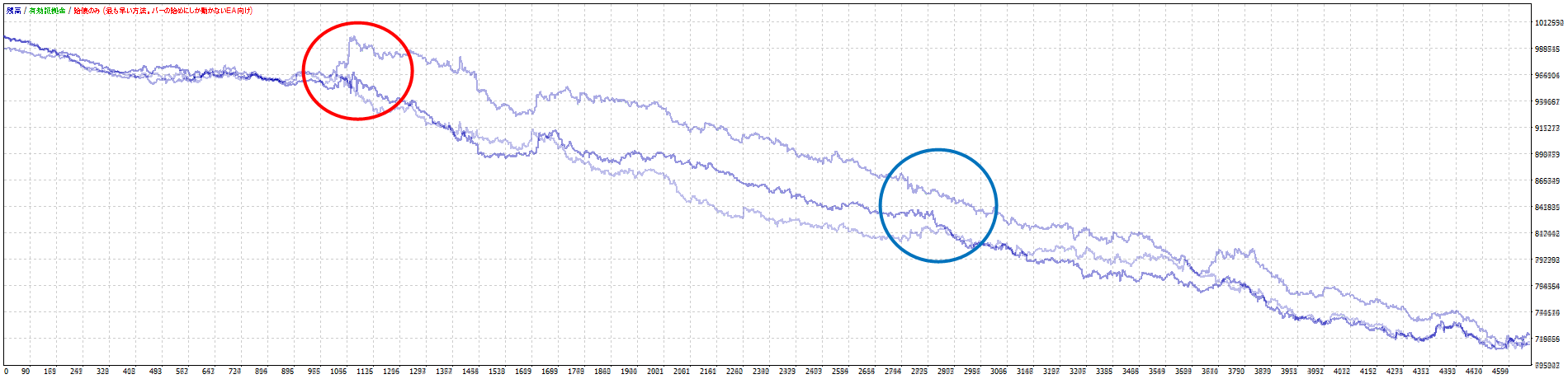 青丸の箇所もマイナスと横ばいですが決済ロジックでもあまり効果が期待できない程度の誤差に見えます。